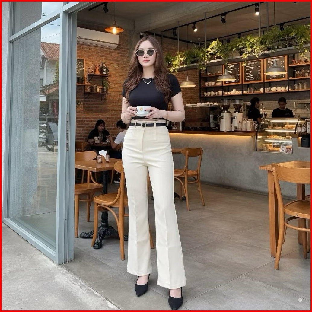 Kylie Cutbray Haighwaist Pants Flare Pants Petite Cutbray Wanita Panjang Casual