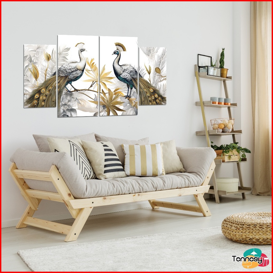 Tennesy Hiasan Dinding Aesthetic 1 Set Peacock Abstract 4 Panel 70x40cm Wall Decor Pajangan Kamar