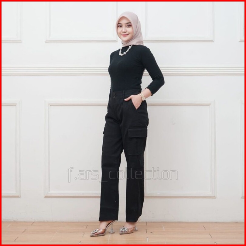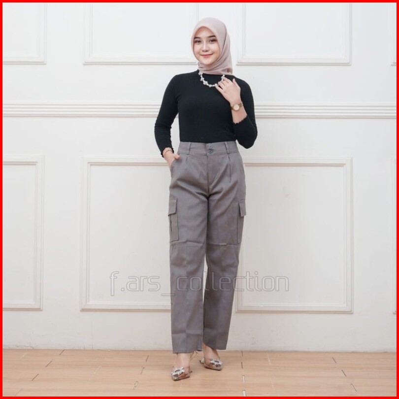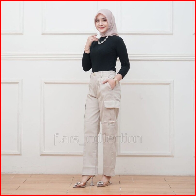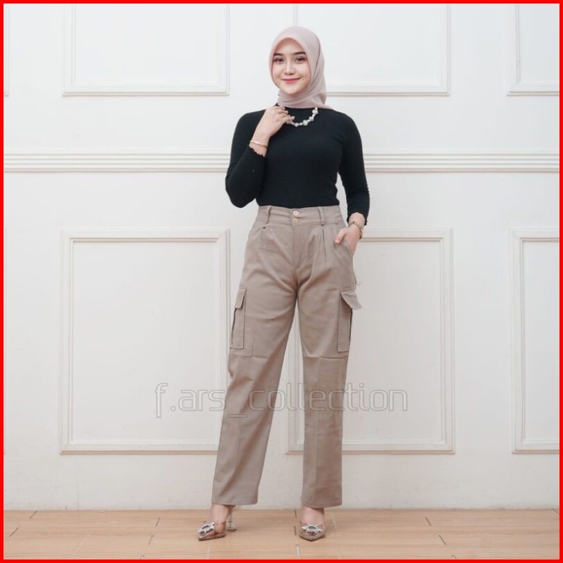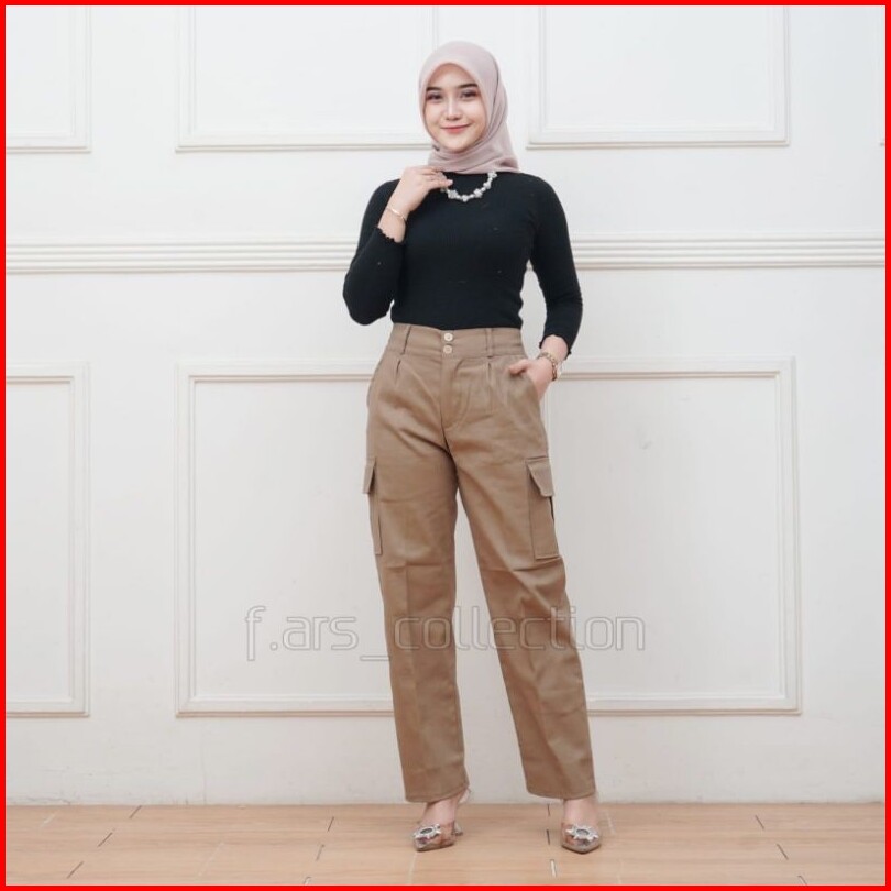Celana Cargo Pants Wanita Highwaist Twill Combed Korean Style Premium