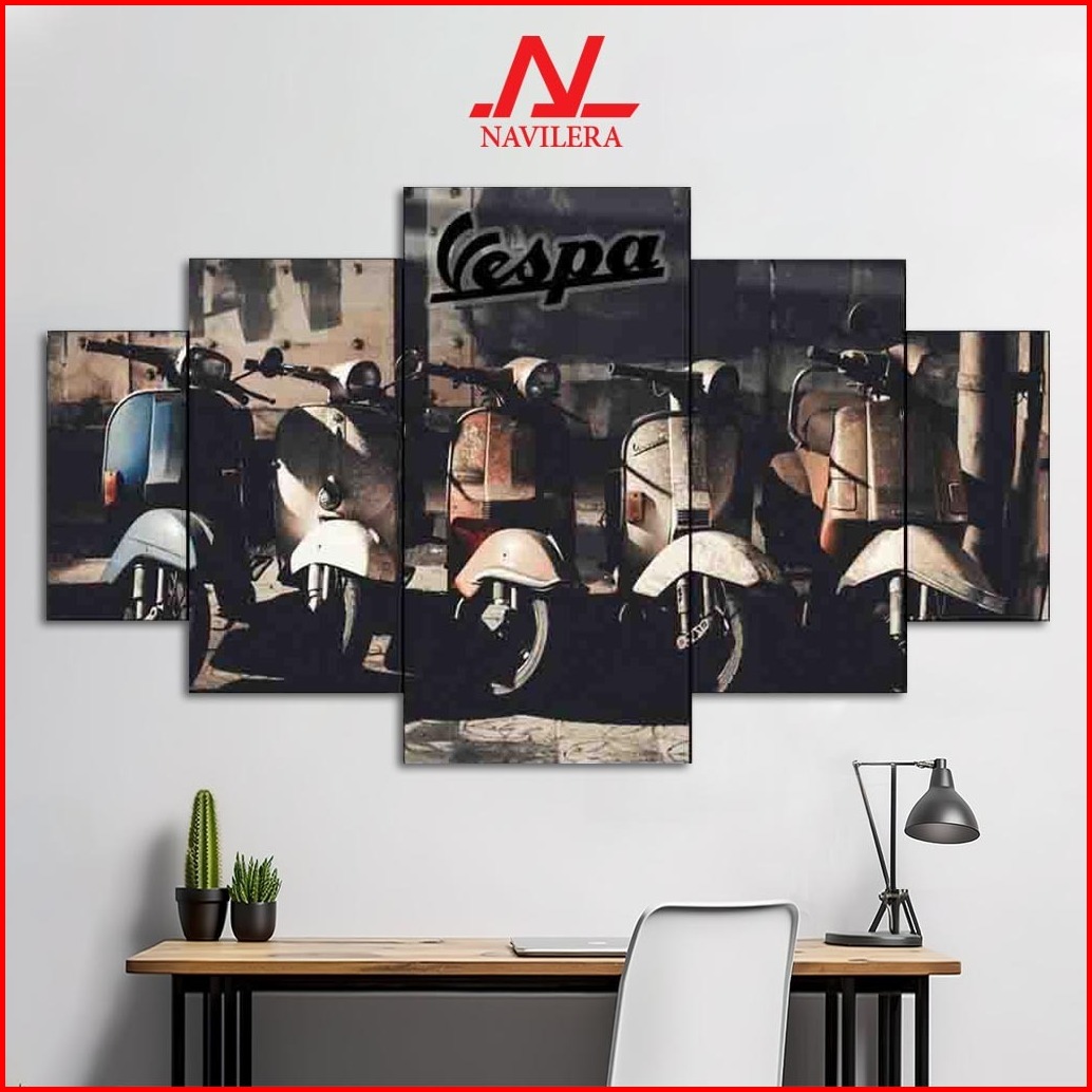 Navilera.co Hiasan Pajangan Dinding Retro Klasik 1 Set Edisi Vespa 5 Pcs Poster Kayu Wall Decor