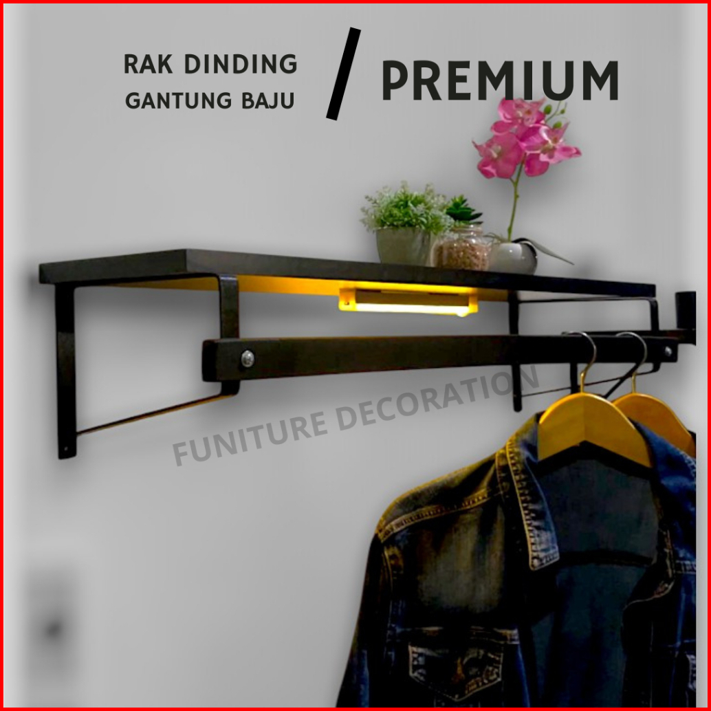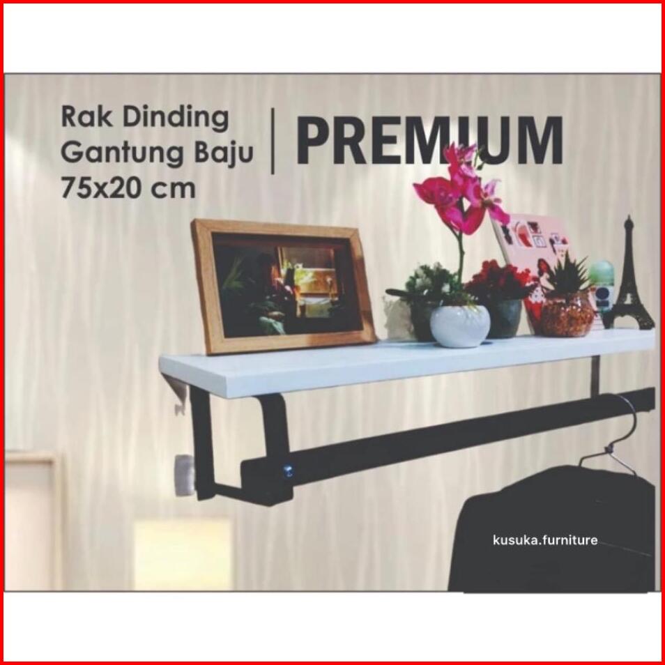 Rak Gantung Ambalan Dinding Pakaian Besi 75x20cm Tiang Besi Dan Braket Solid