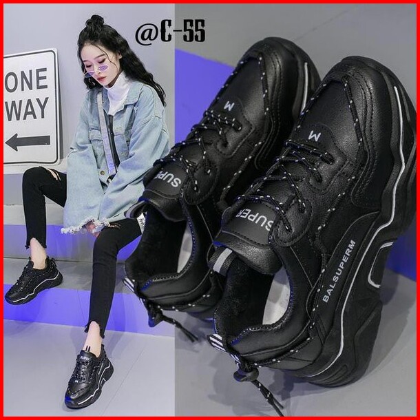 Sepatu Sneakers Wanita Model Sport Warna Hitam Putih Untuk Pelajar Balsuperm