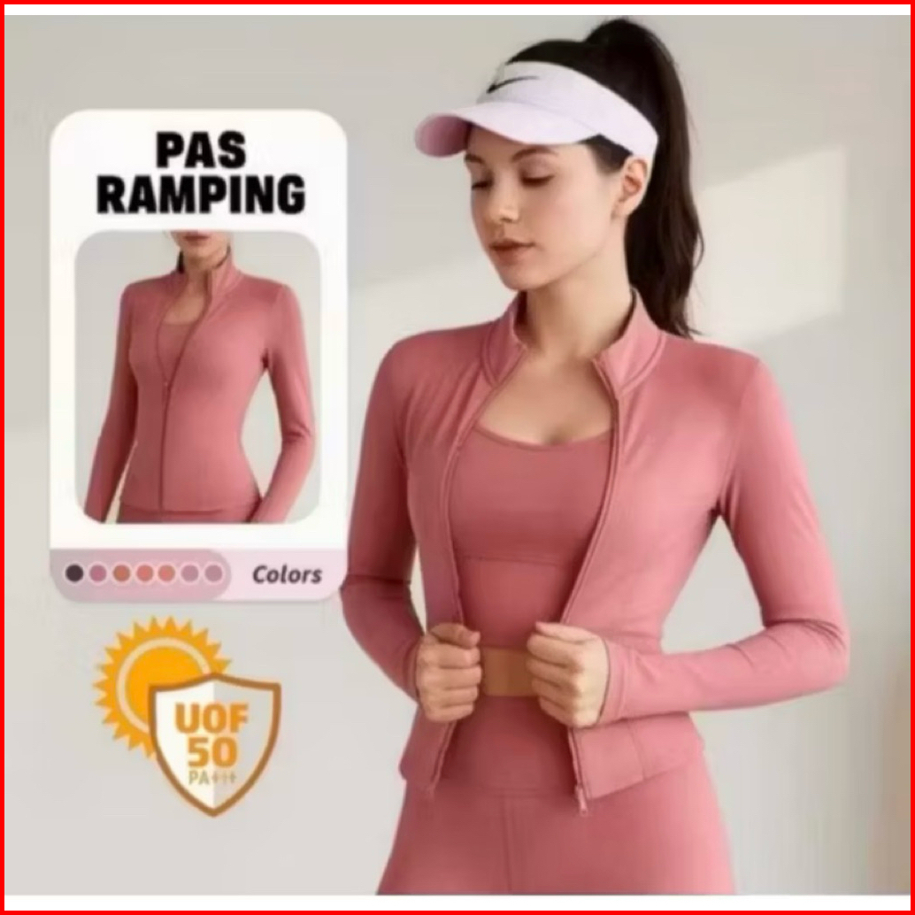 Azkifashion - Jaket Olahraga Wanita Fit Body Tangan Panjang Premium Anti Uv Bacterial Cocok Buat Running Gym Dll