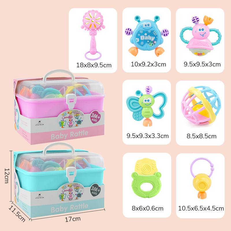 Treehub 7Pcs Teether bayi gigitan bayi Mainan Kerincingan Bayi 0-12 Pendidikan Awal Teether Bayi Set Rattle Bayi Musik