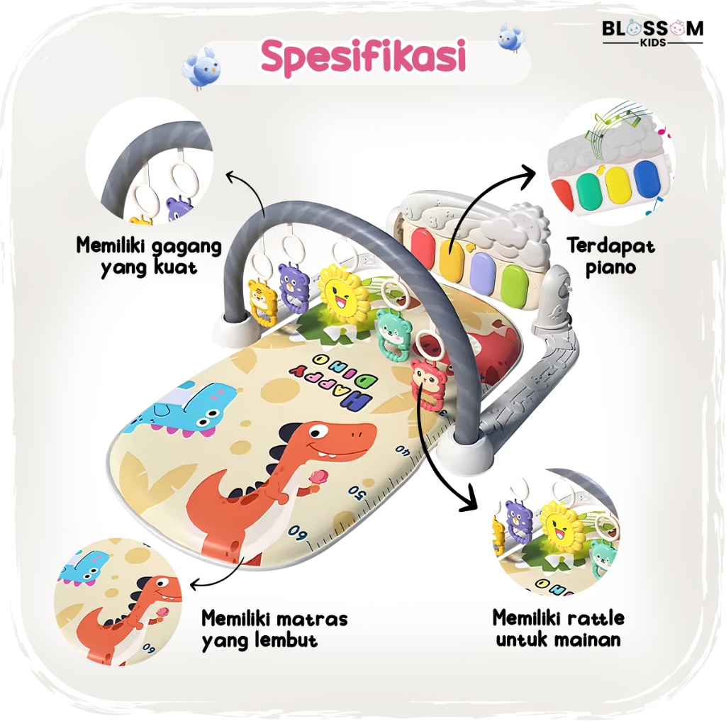 Playgym Music Baby Playmate Karakter Animal Babygym Piano Mainan Anak Musical Kado Bayi Newborn BLOSSOM KIDS