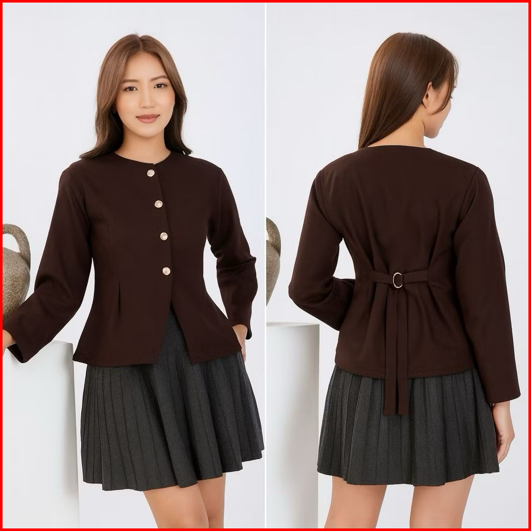 Ailee Long Sleeve Top Bahan Semi Wool Luxury Atasan Lengan Panjang Hijab Friendly Blouse - Blazer Wanita Korean Look