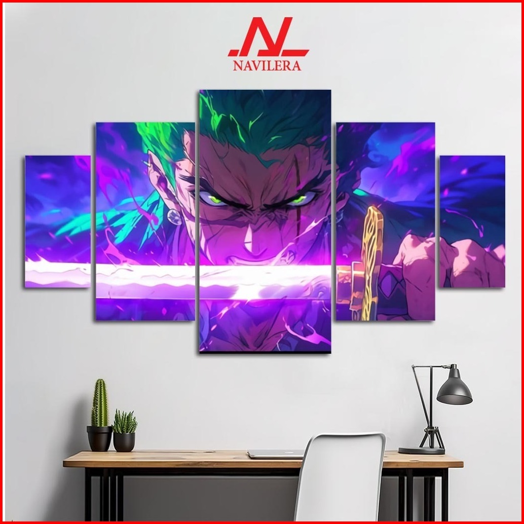 Navilera.co Hiasan Pajangan Dinding Kamar Poster Anime One Piece Zoro 1 Set Poster Kayu Wall Decor