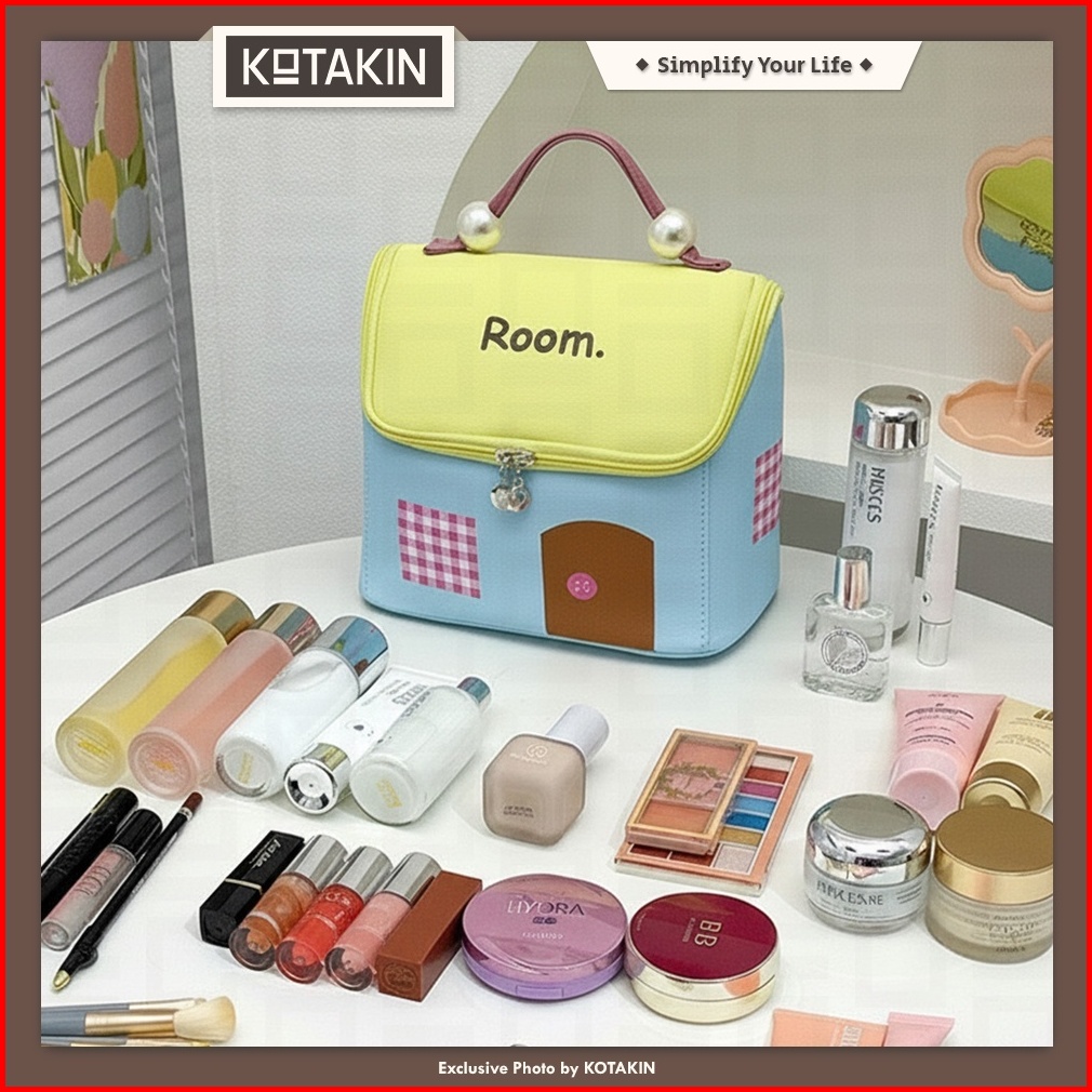 Kotakin Tas Kosmetik Handle Jinjing Portabel Penyimpanan Pouch Makeup Besar Mua Organizer Travel Serbaguna
