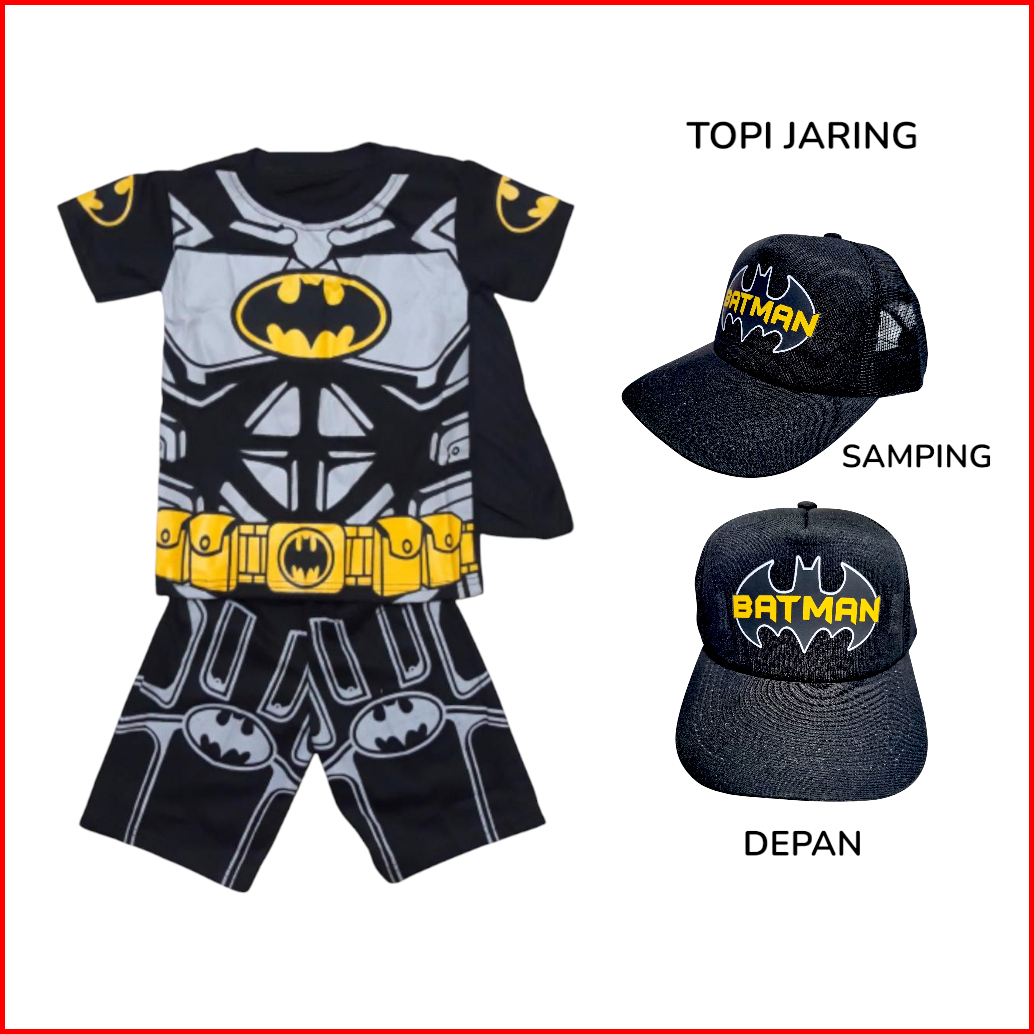 Baju Setelan Kostum Anak Laki Laki Superhero Batman Pendek Ada Sayap
