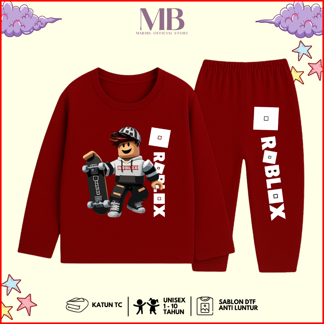 Setelan Panjang Roblox Anak Laki Laki Piyama Tidur Motif Anak Cowok Keren Game Boy Usia 1 - 10 Tahun