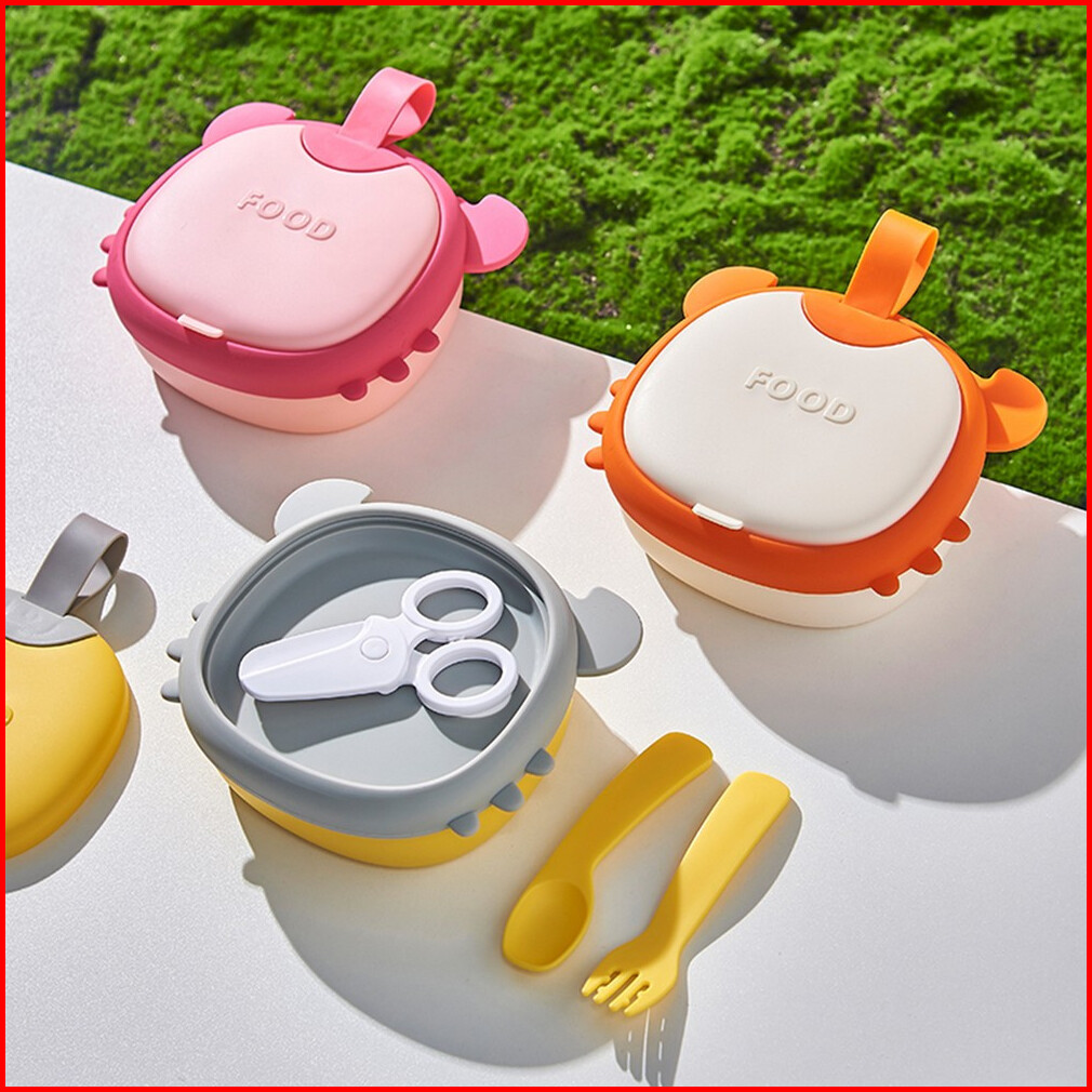 Kotak Makan Anak Bentuk Crab Set Sendok Garpu Gunting Kids Lunch Box Rantang Makan Kotak Makan Siang Bento Tempat Makan