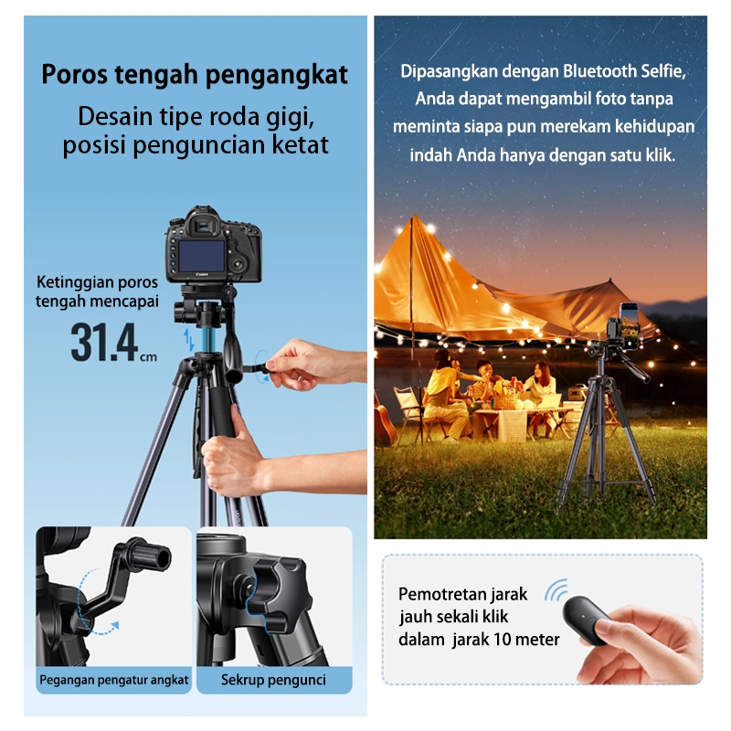 Akona 1.7M Tripod Kamera Handphone Bluetooth Remote Konten Kreator 360° Rotasi Tripod HP Anti Goyang 1/4 Adaptor Free Ta