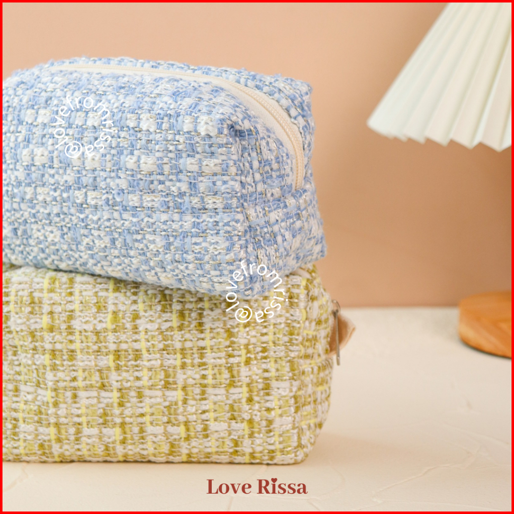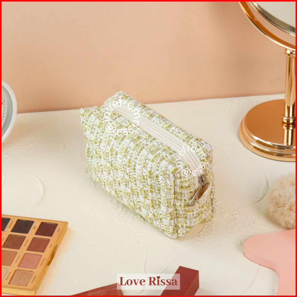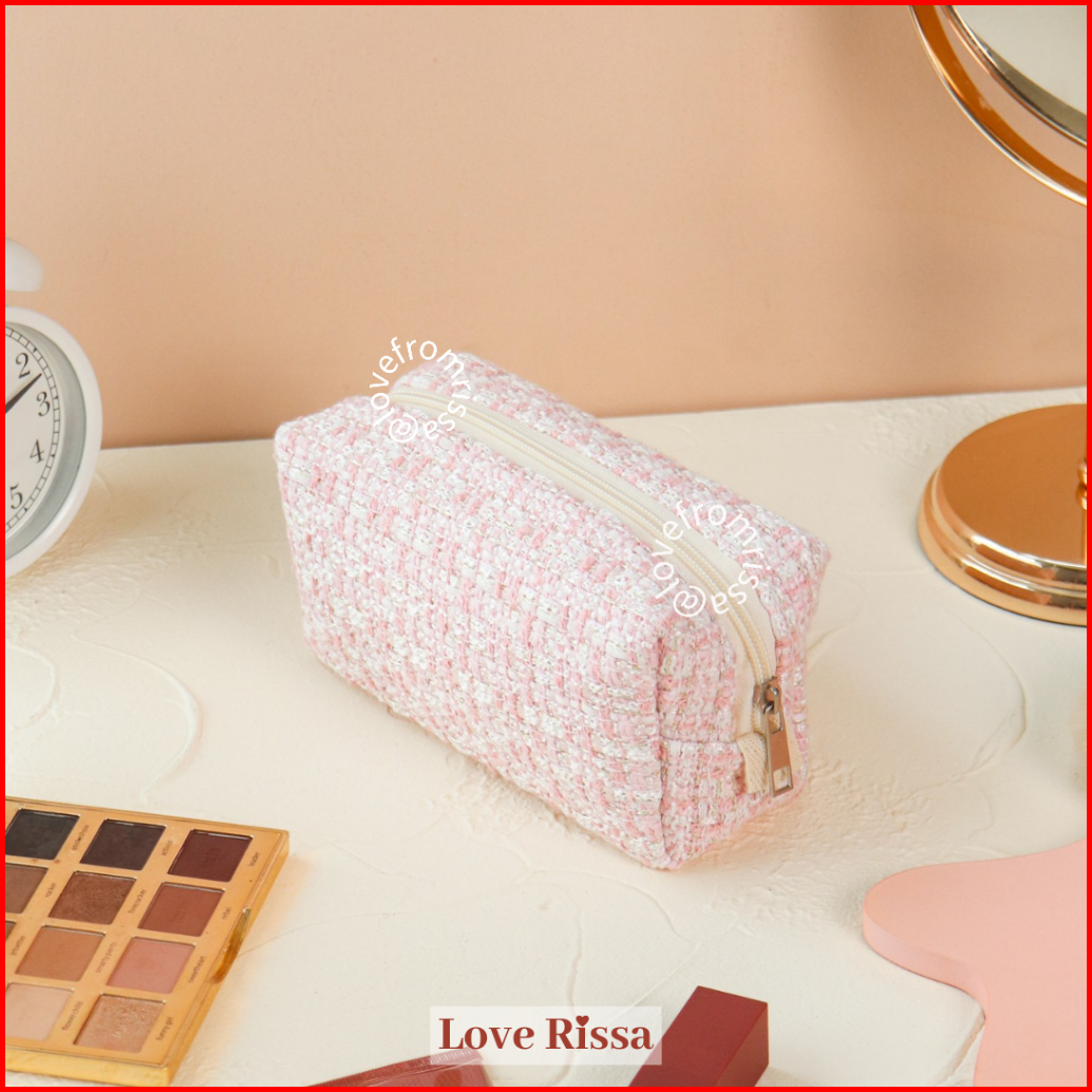 Rissa Pouch Jennie Tweed Makeup Pouch Tempat Pensil Lucu Kotak Pensil Tempat Makeup Mini Kantong Kecil Alat Sekolah Kant