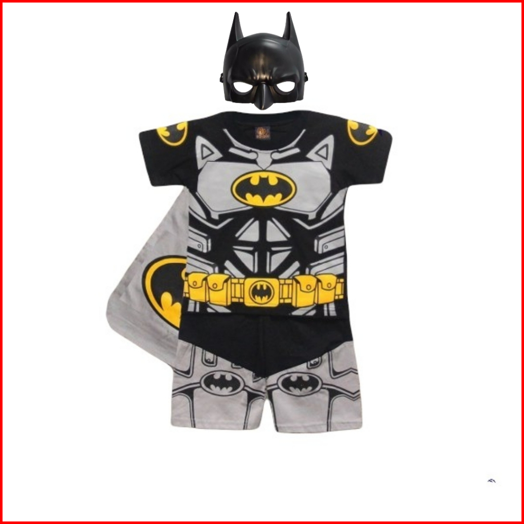 Setelan Baju Anak Kostum Lengan Pendek Batman Free Topeng 2-10 Tahun