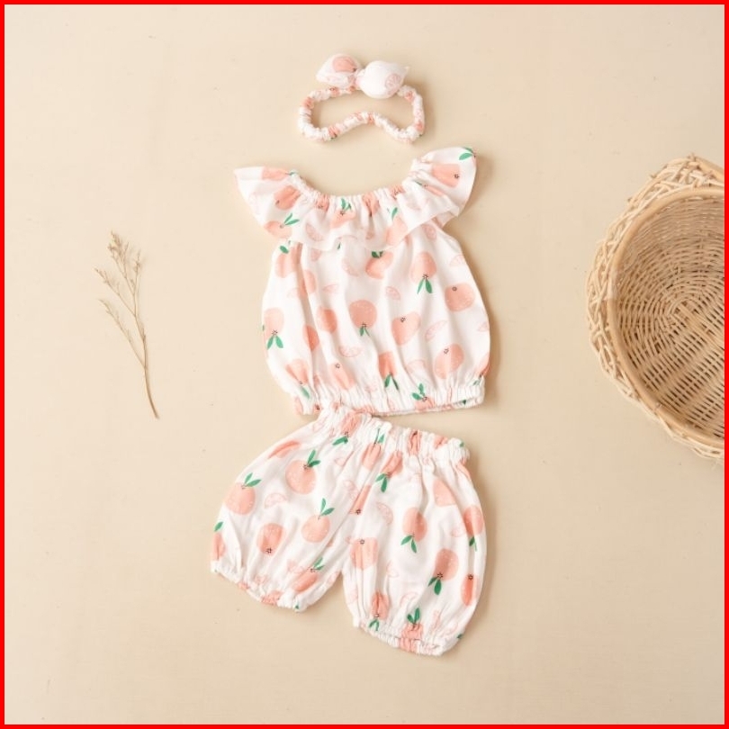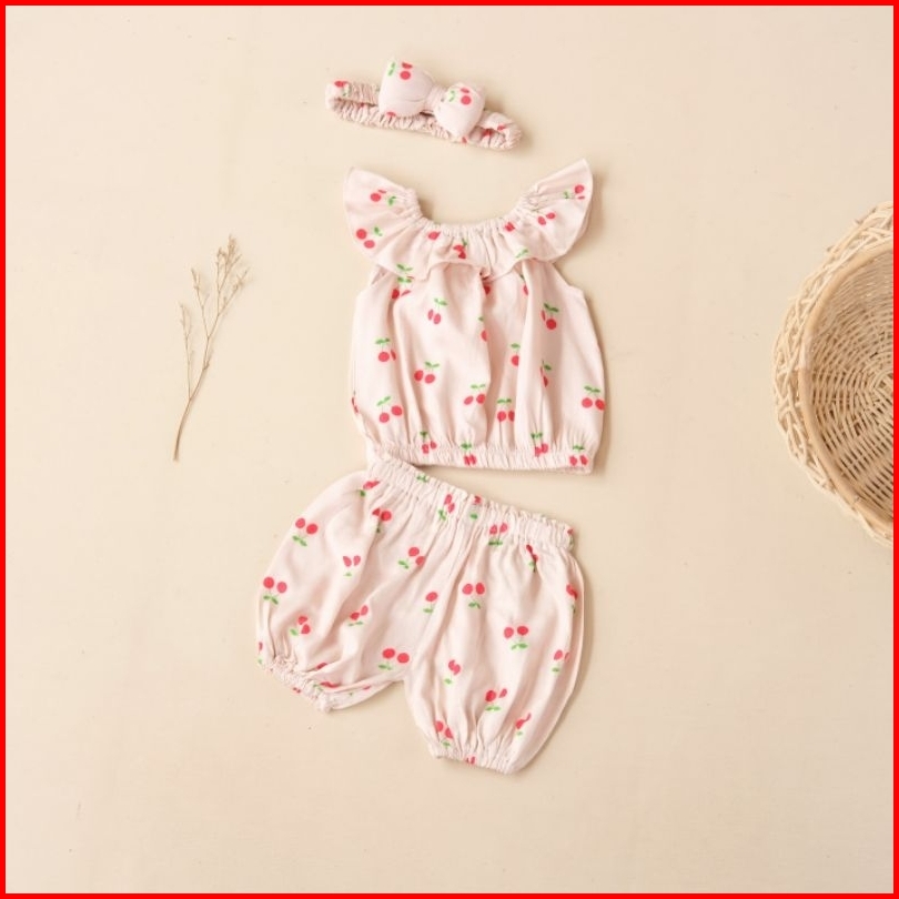 Setelan Bayi Sharla Bahan Rayon Bonus Headband 0-12 Bulan