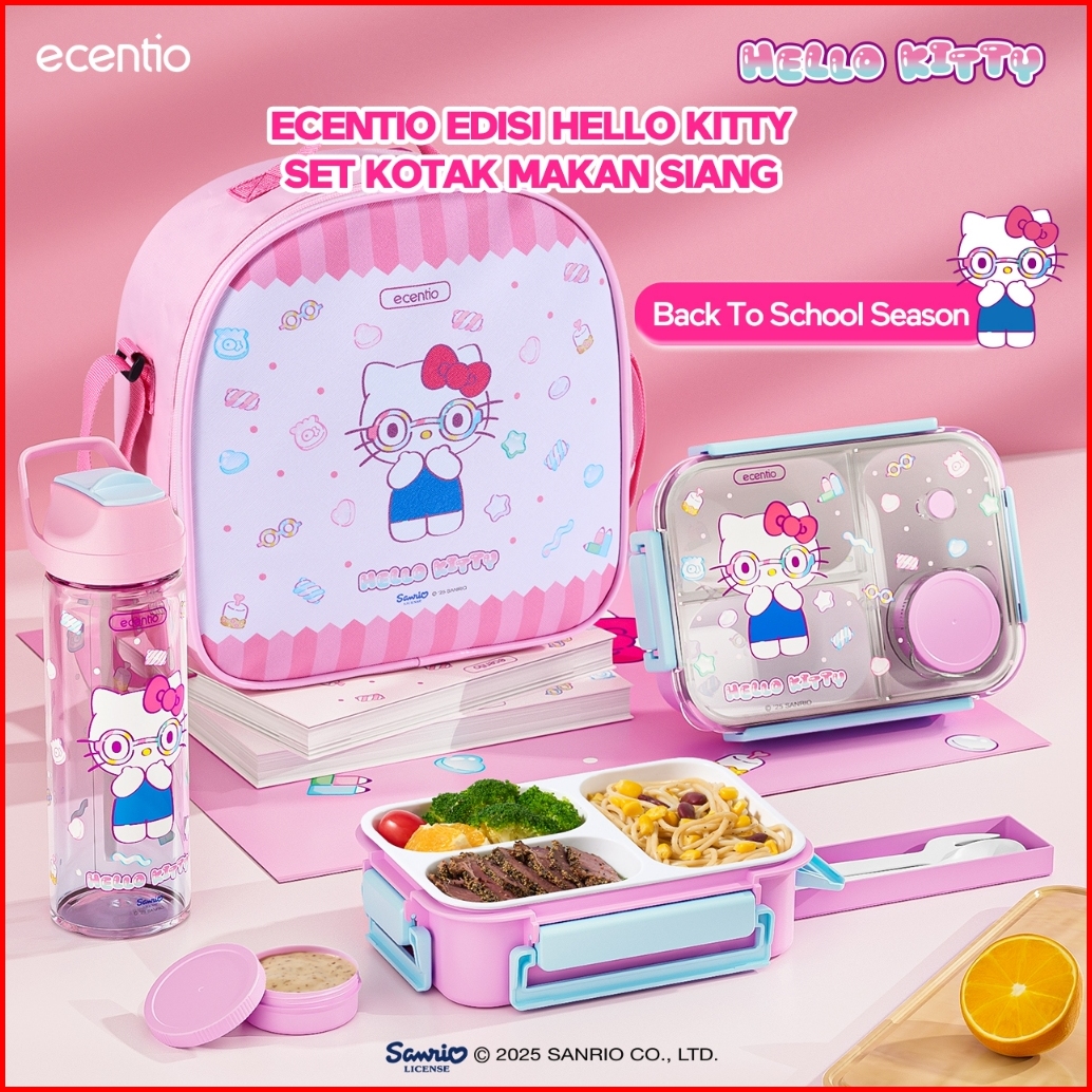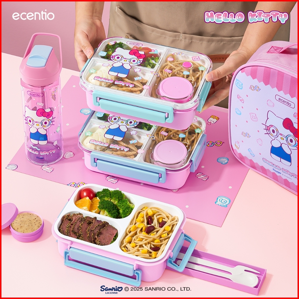 Back To Schoolecentio Sanrio Edition Hello Kitty Tempat Bekal Set Anak Sekolah Lucu Bpa Free 3 Sekat 800ml Kotak Bekal A