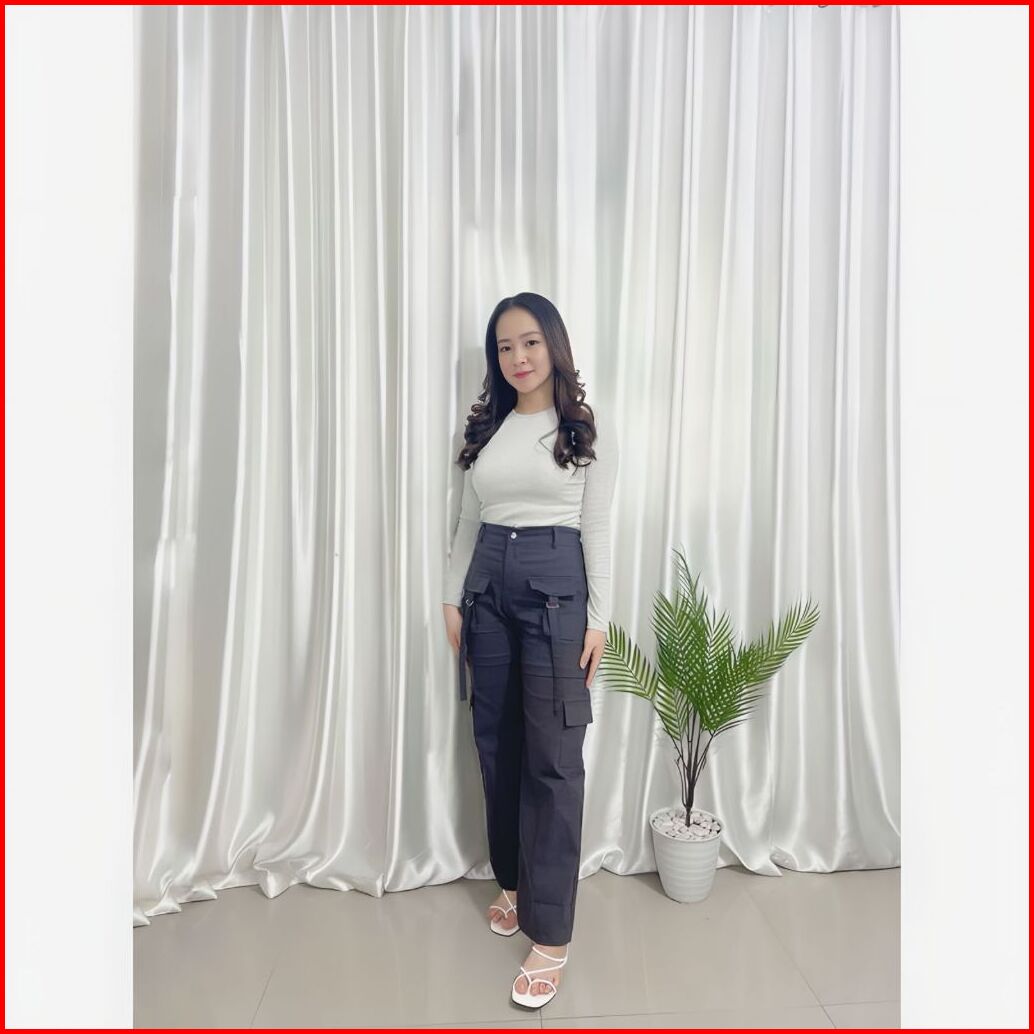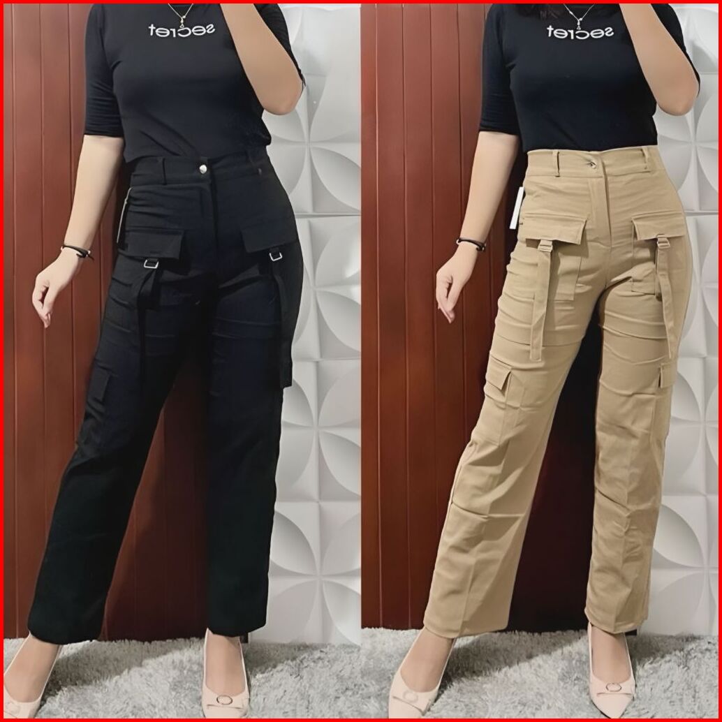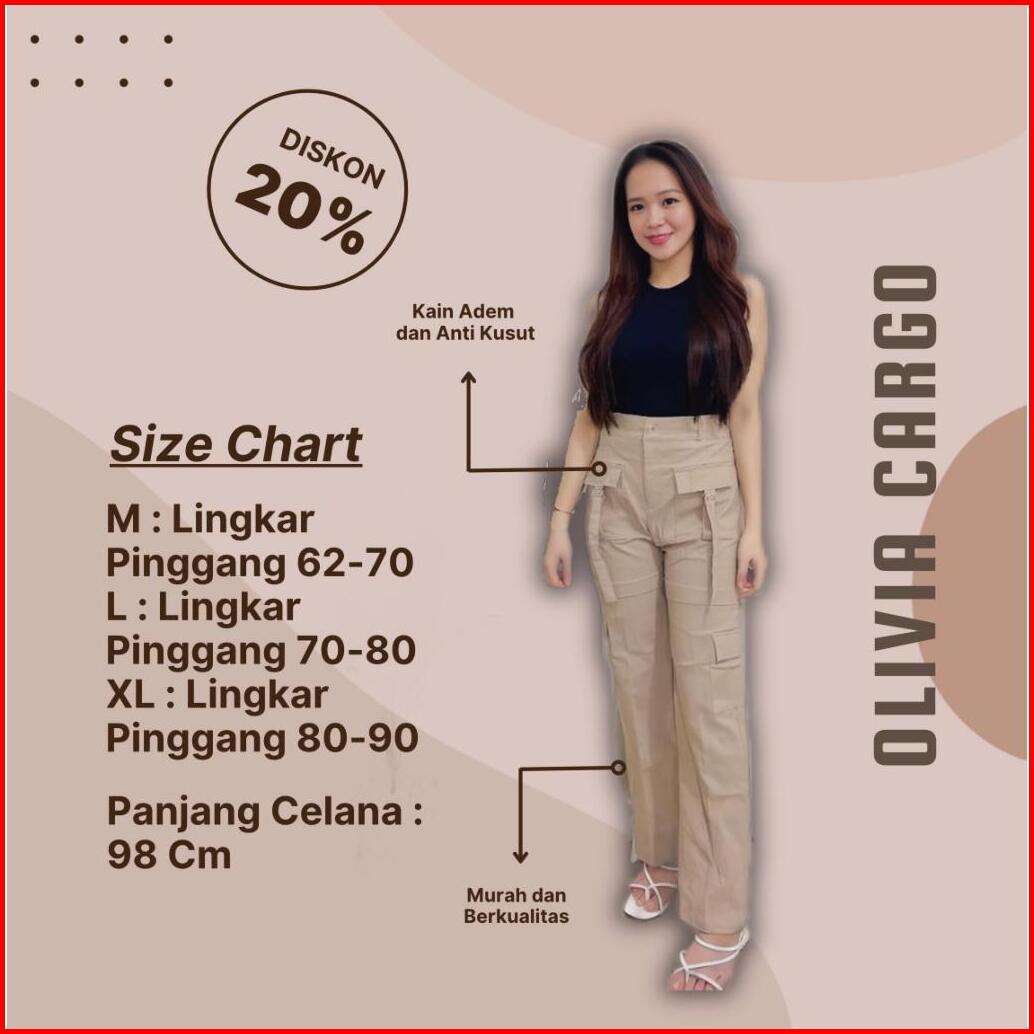 Olivia Celana Cargo Wanita - Celana Panjang Cargo Strech Katun Twill Kulot Wanita Highwaist
