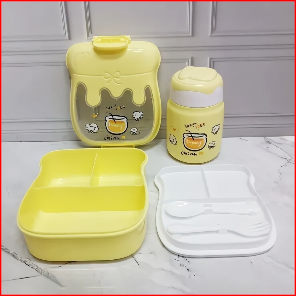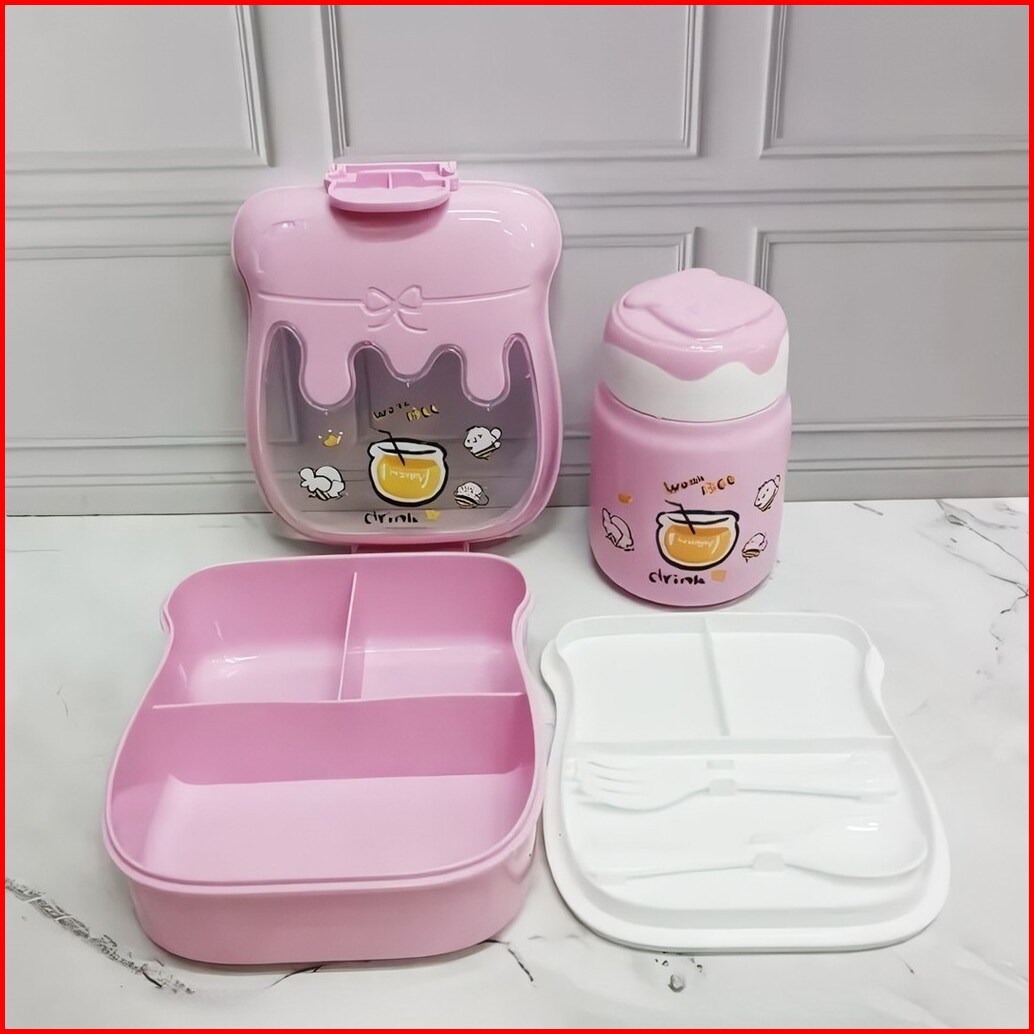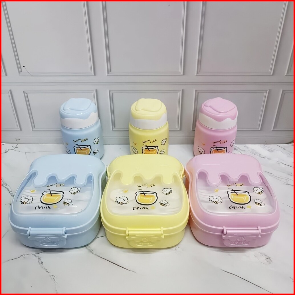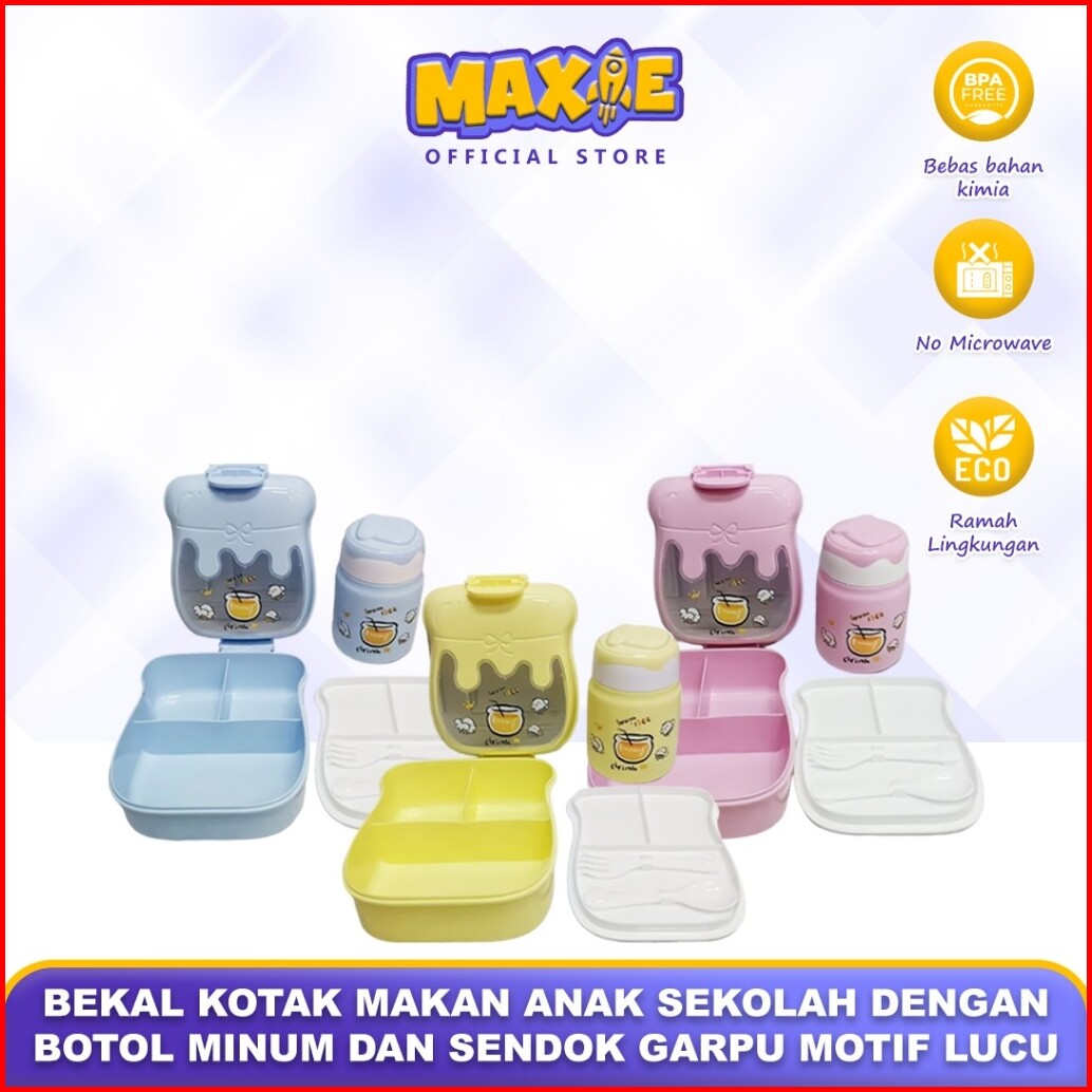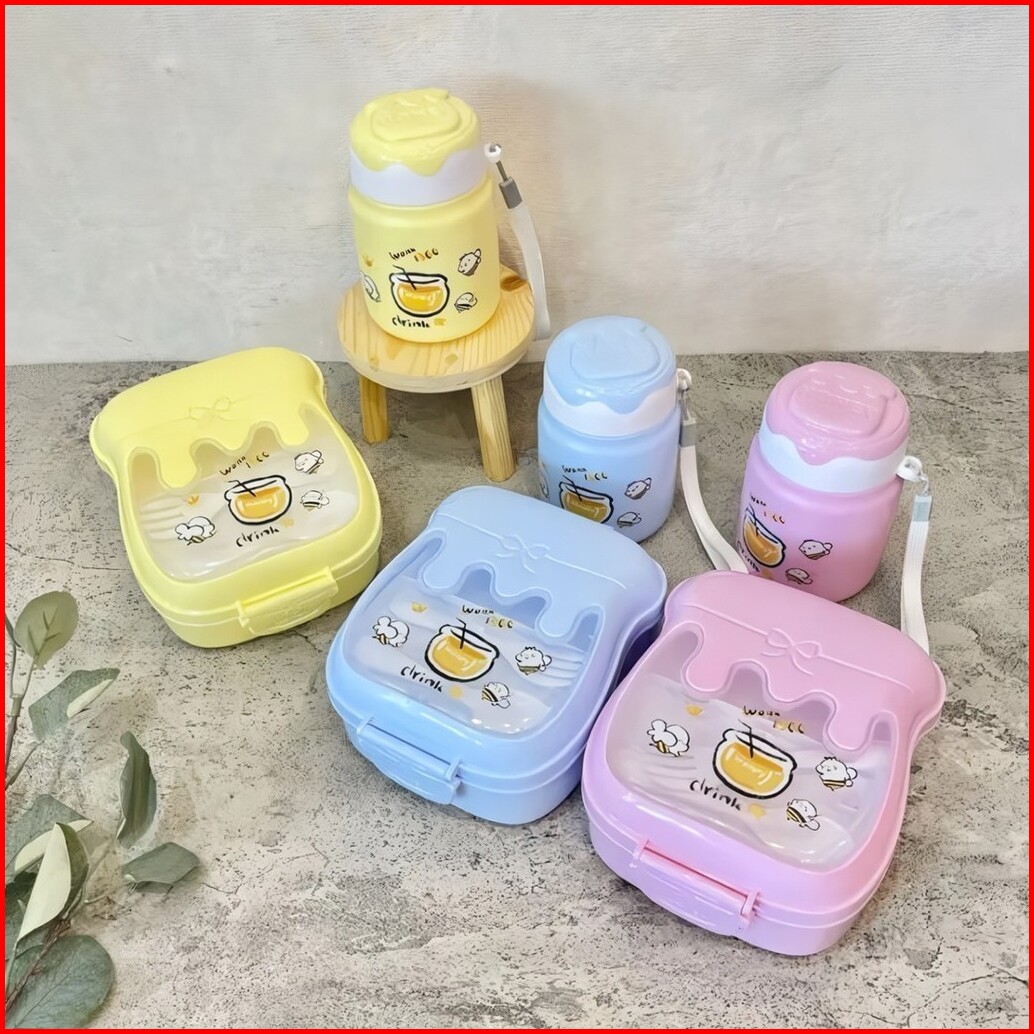 Bekal Kotak Makan Anak Sekolah Dengan Botol Minum Dan Sendok Garpu Motif Lucu 5454