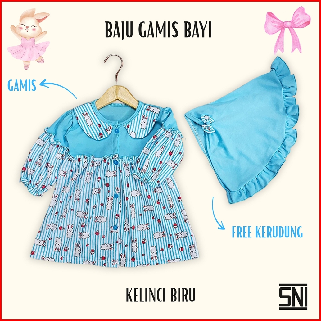 Baju Gamis Bayi Anak Perempuan Usia 0 - 12 Bulan Motif Kelinci Free Kerudung Merk Little Star Sni