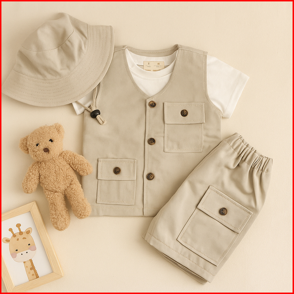 Satu Set Rompi Petualangan Safari Anak Bayi Baju Outfit Outdoor Kids Laki-laki Perempuan