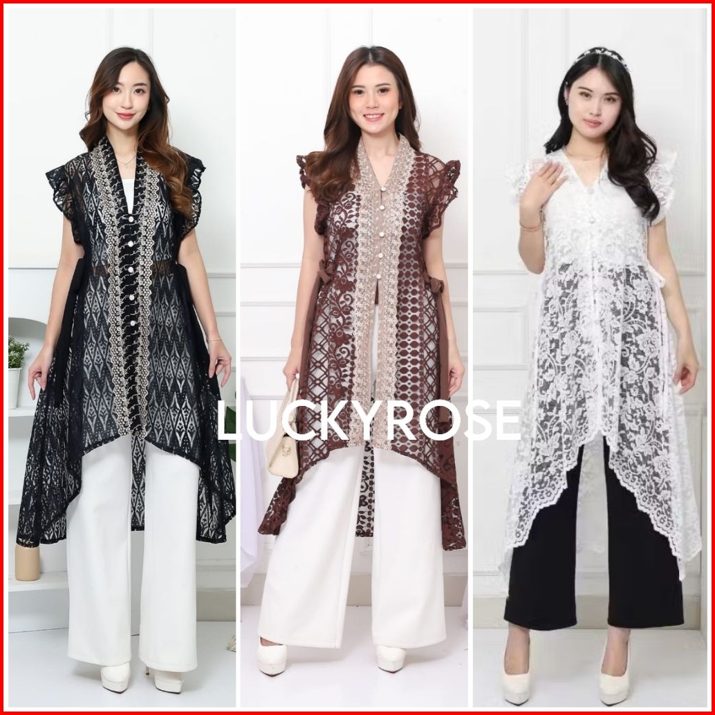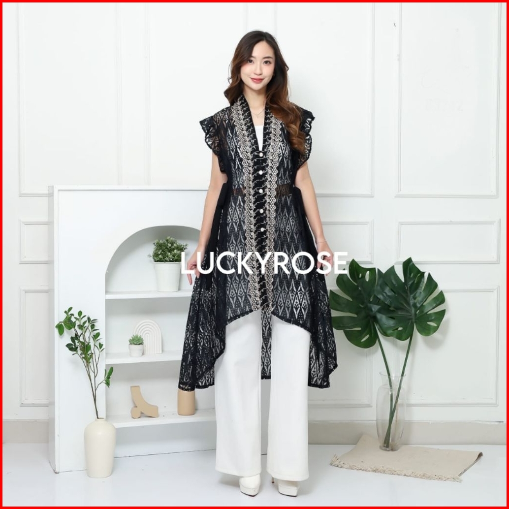 Poya Outer Brukat Cardigan Brokat Lengan Pendek Ruffle Atasan Outher Brukat Outer Brokat Kondangan Lebaran Outer Brocade