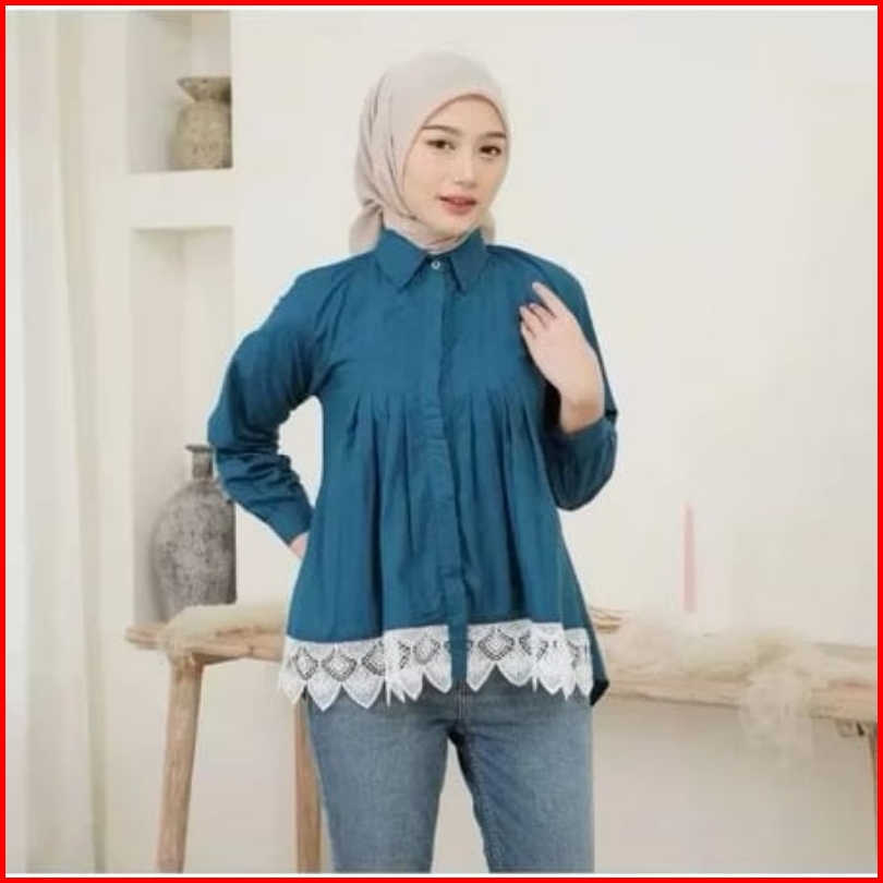 Jema Basic Blouse - Kemeja Basic Renda - Atasan Blouse Wanita Basic