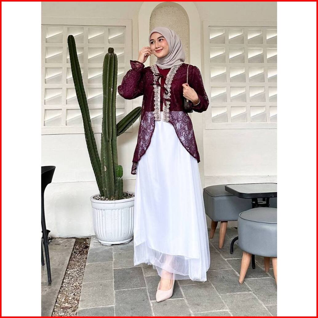 Tunik Wisa Outer Tille Brukat Cardigan Atasan Kondangan Lebaran Raya Bridesmaid Wisuda Pesta Renda