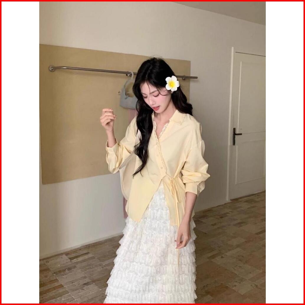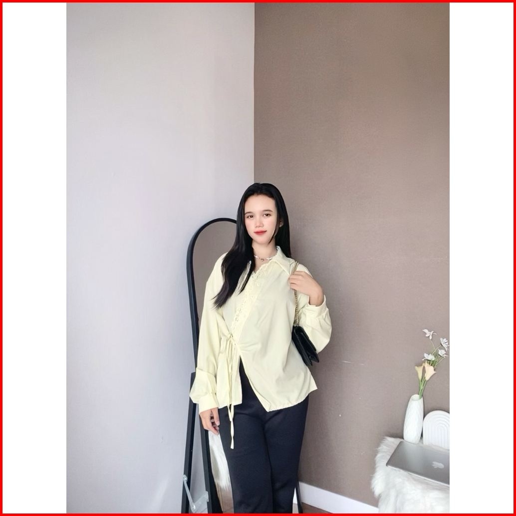 Nj Marcinda Christian Blouse Kera V Neck Lengan Panjang Kera Renda Tali Aktif Fashion Woman New Korean Style