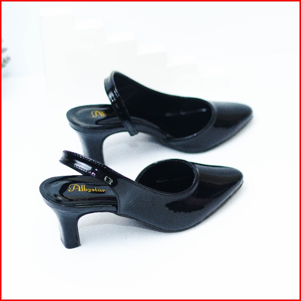Albystar - Darel Heels Wanita Cantik 5 Cm Motif Tali Polos Mahogani Burgundy Simple