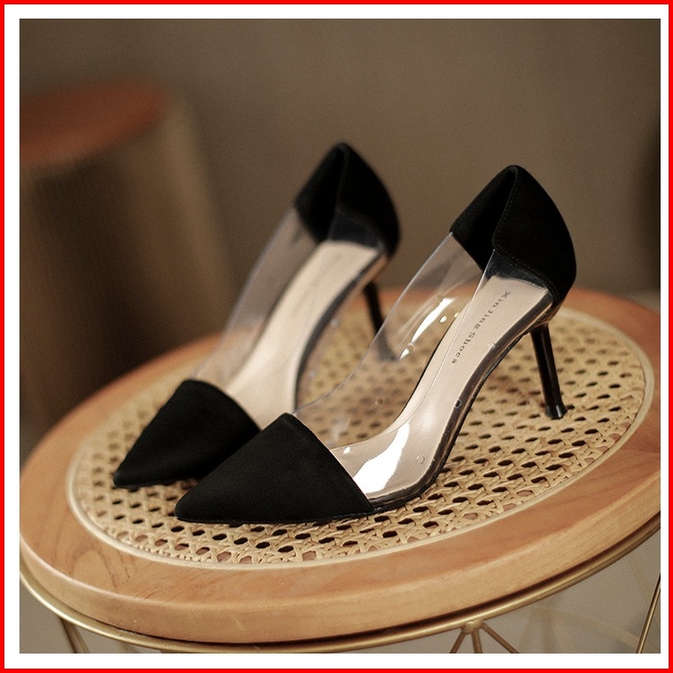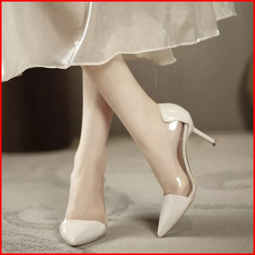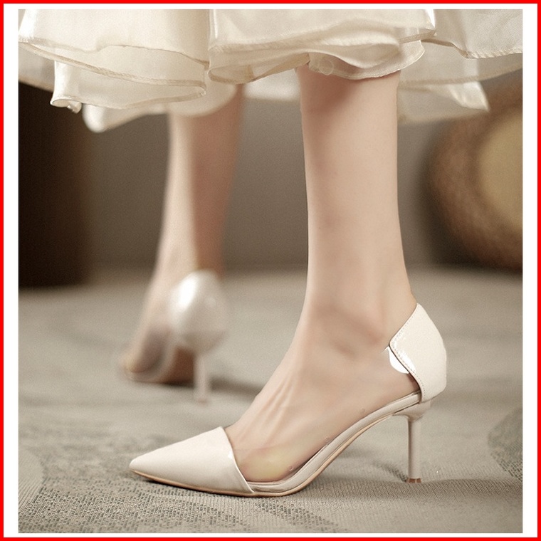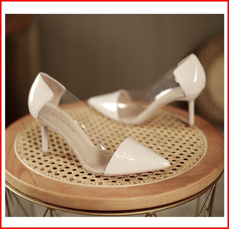 Fradella21 - Heels Pumps Wanita Kombi Mika Bening Hak 7cm Md 05