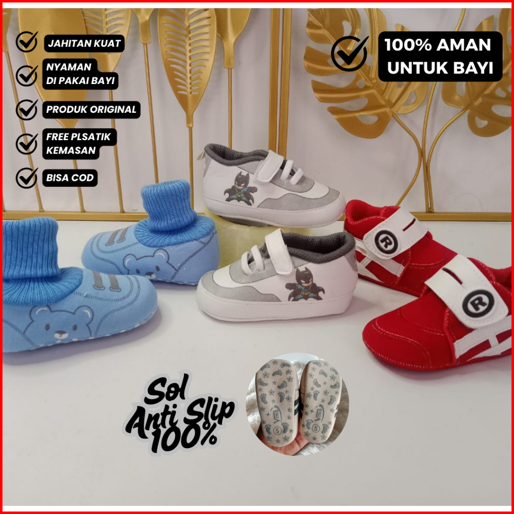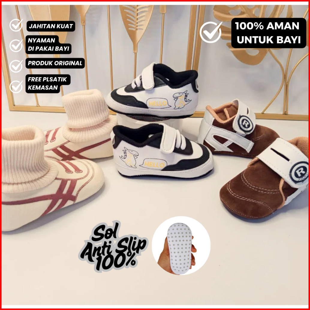 Paket 3 Pcs Sepatu Bayi 0-12 Bulan Lebih Murah Berkualitas Anti Slip Nyaman Untuk Bayi Belajar Jalan