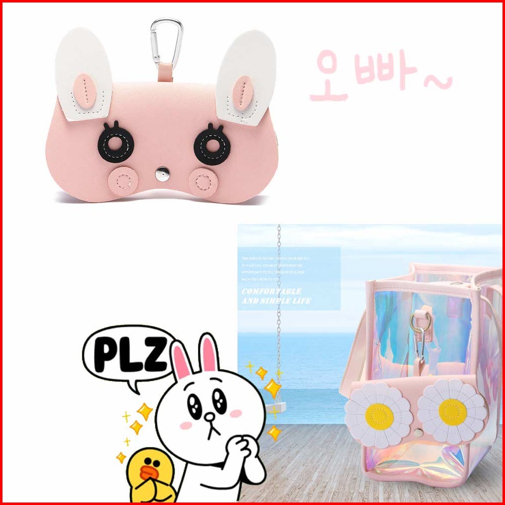 Tempat Kotak Kacamata Gantungan Tas - Aksesoris Fashion Wanita Korea Karakter Cute - Leather - Black Pink Group