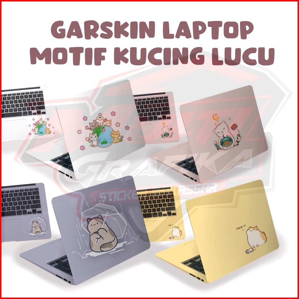 Multi Stiker Garskin Laptop Cover Protector Notebook Skin Garskin Cute Cat Kucing Lucu Minimalis 61