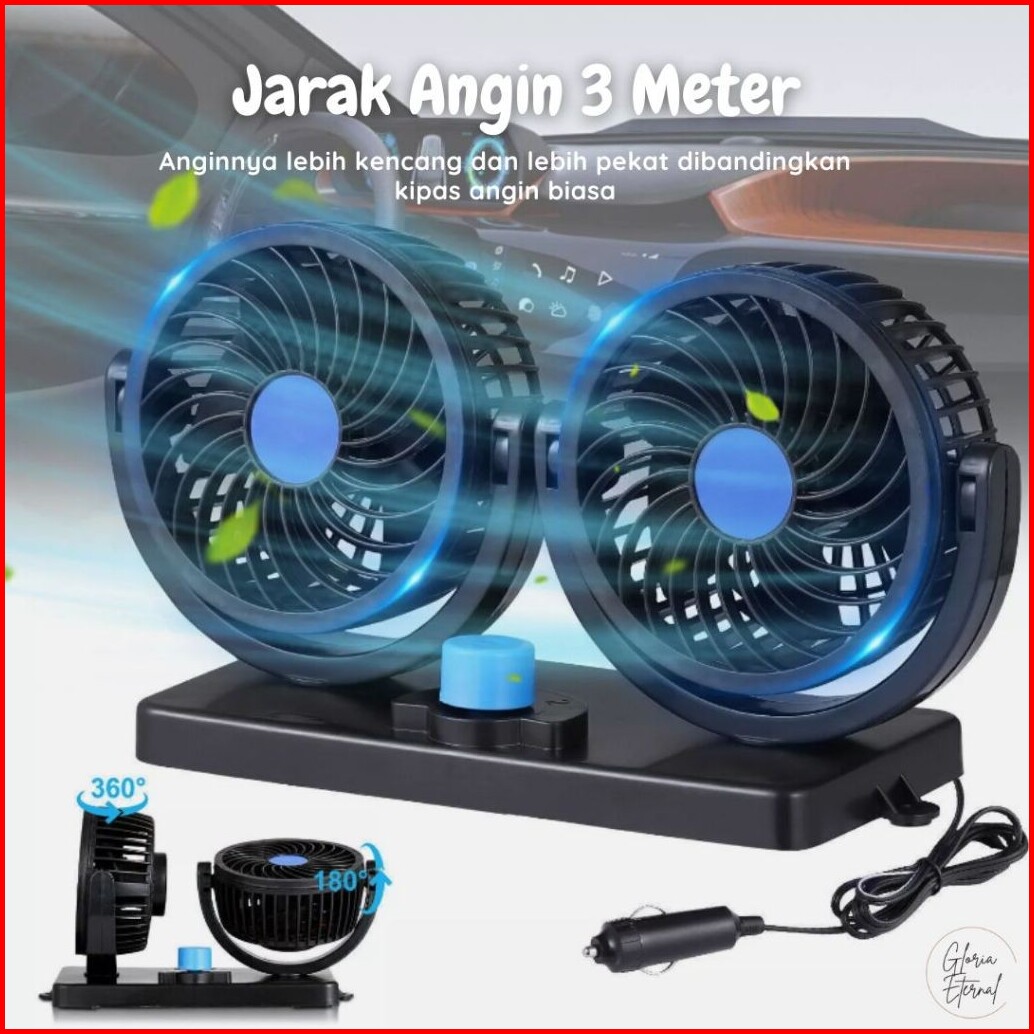 Kipas Mobil Portable Double Fan Head - Kipas Mobil Kipas Mobil 12 24 Volt Double Fan Kipas Angin Mobil Kipas Angin Mobil