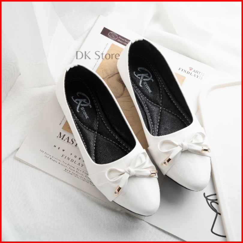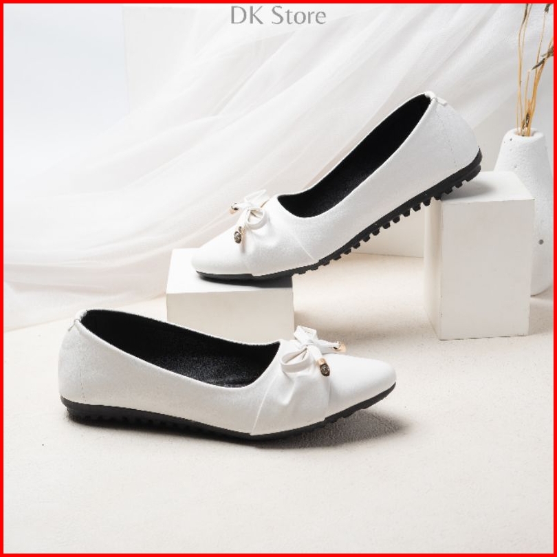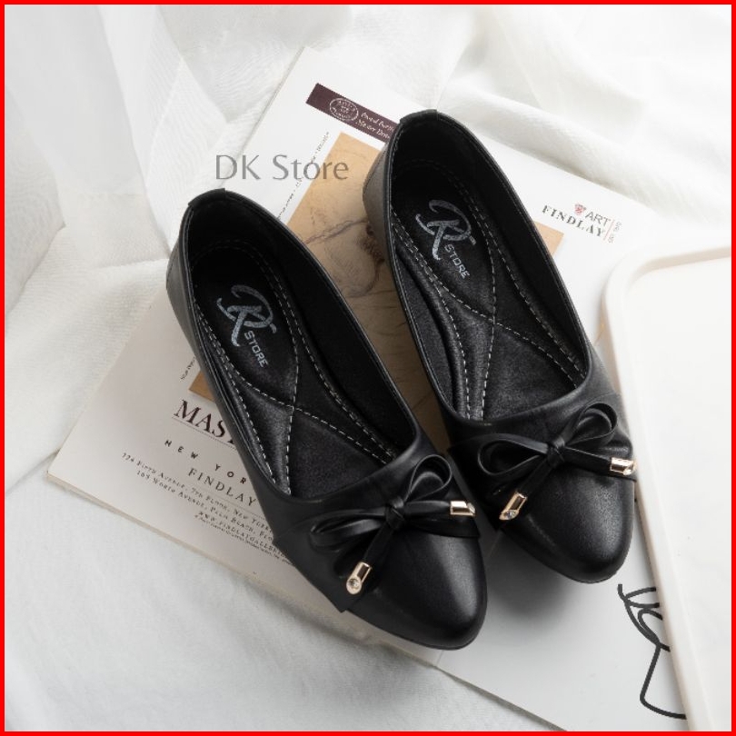 Sepatu Wanita Dewasa Flatshoes Fita Kerja Non Slip Lentur Karet Hitam Putih Empuk Fleksibel