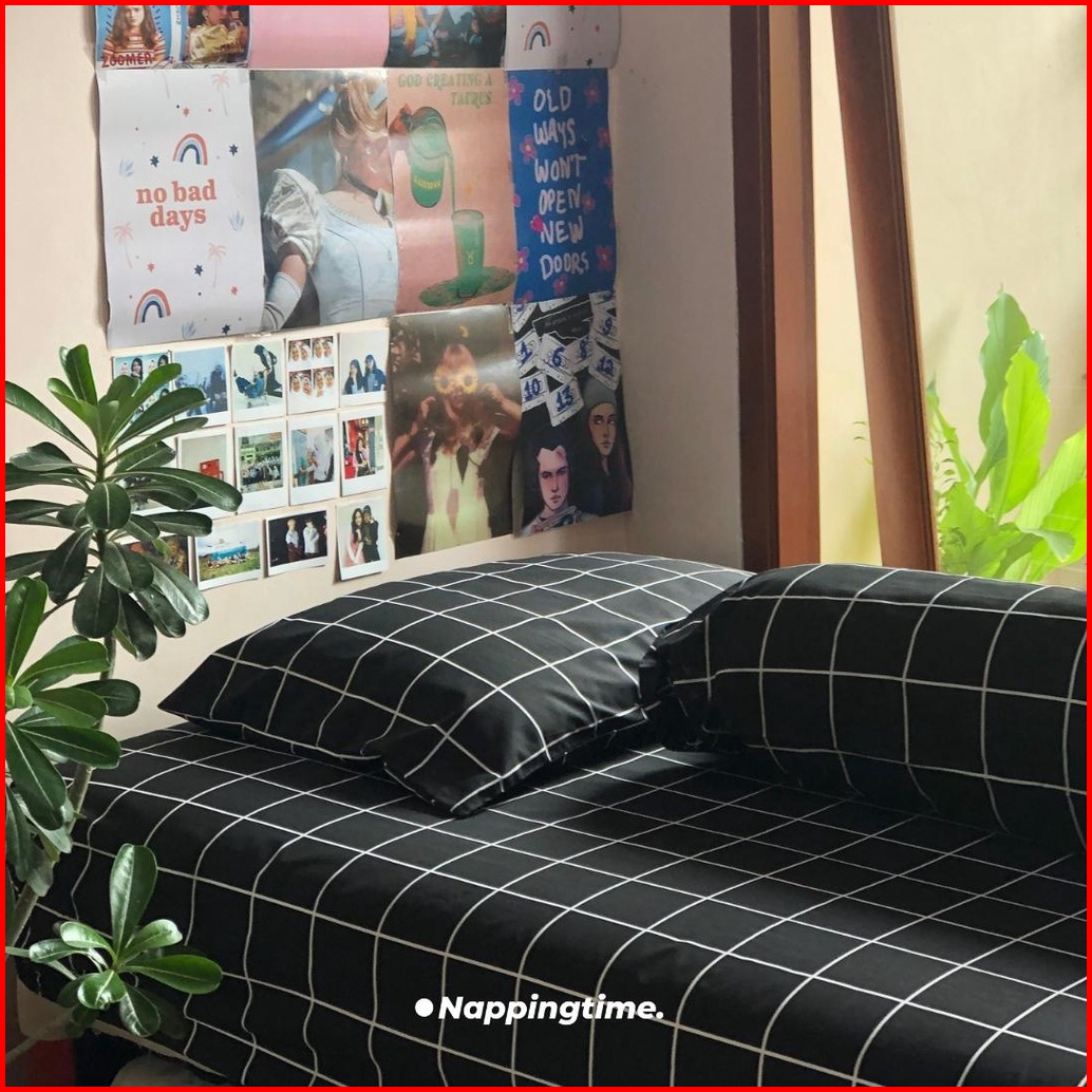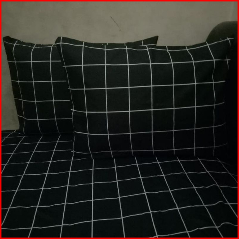 Sprei Set Aesthetic Motif Kotak Hitam Promo Termurah
