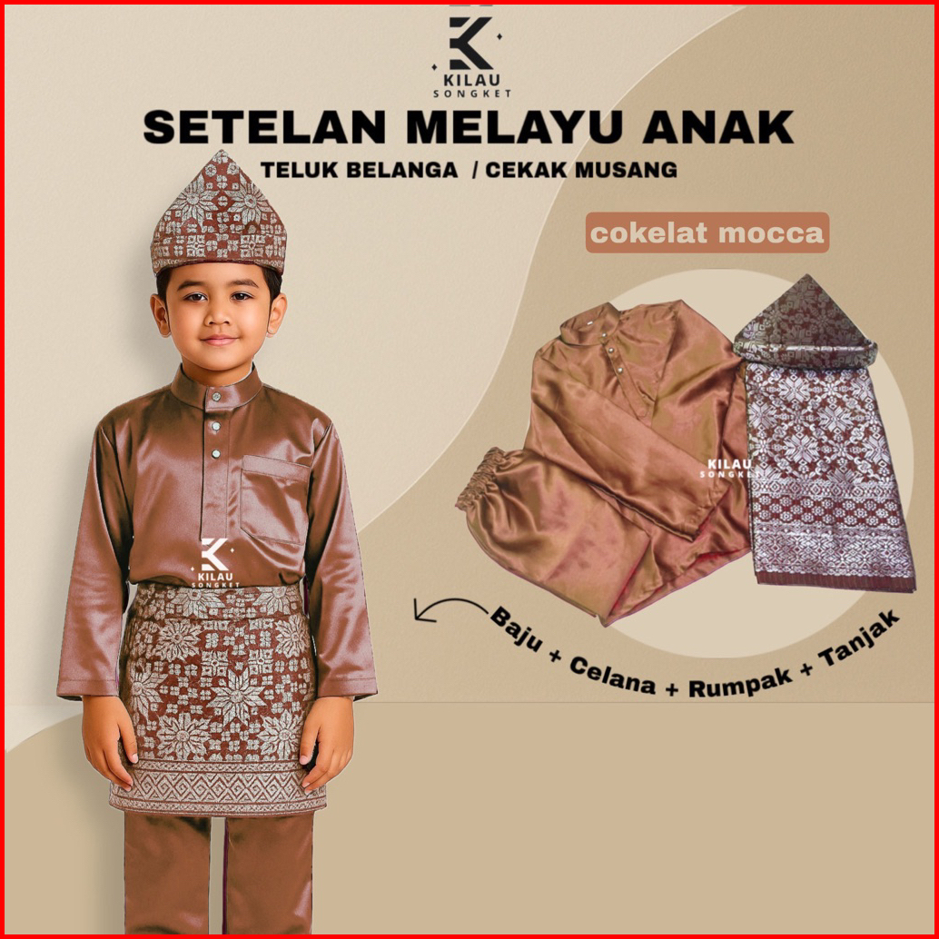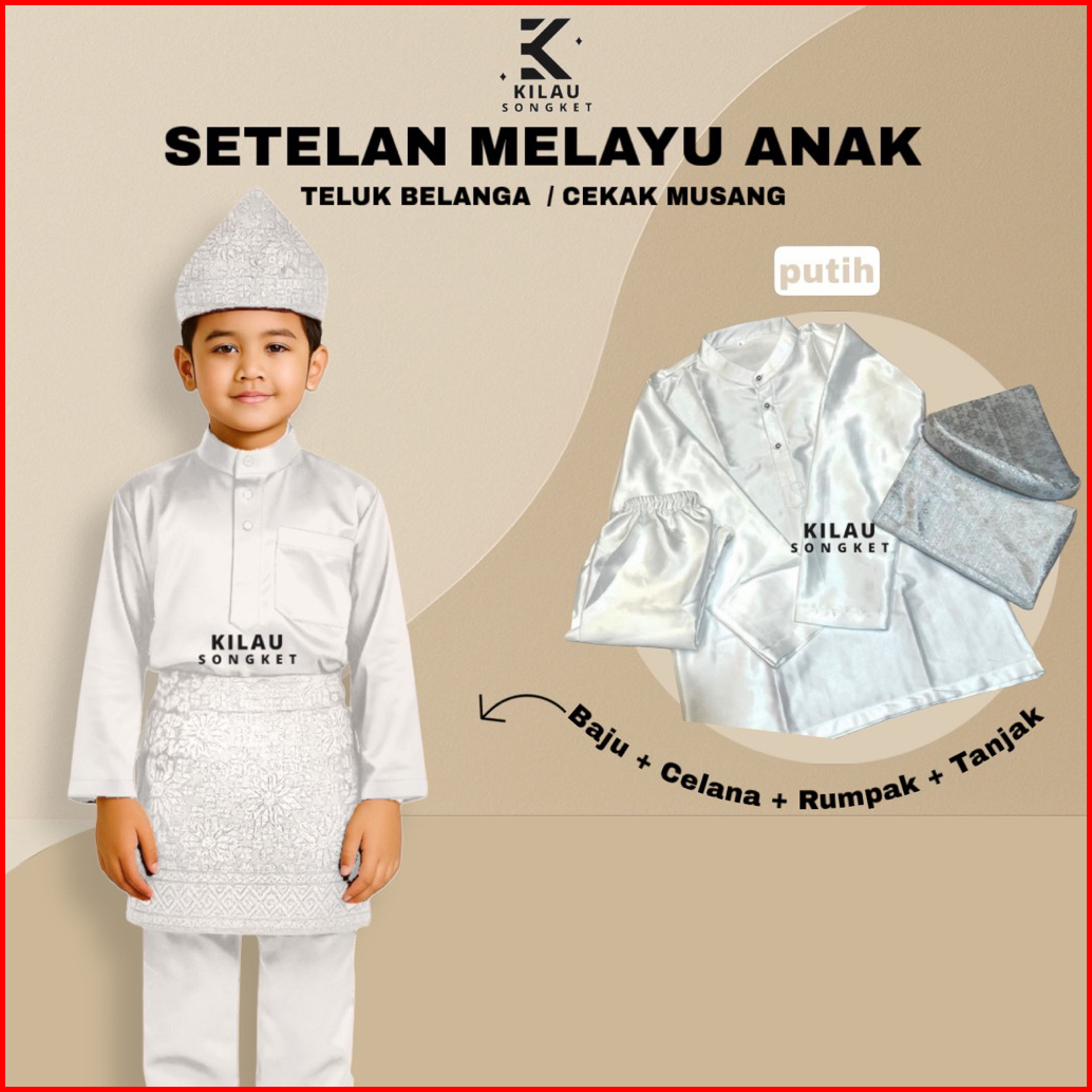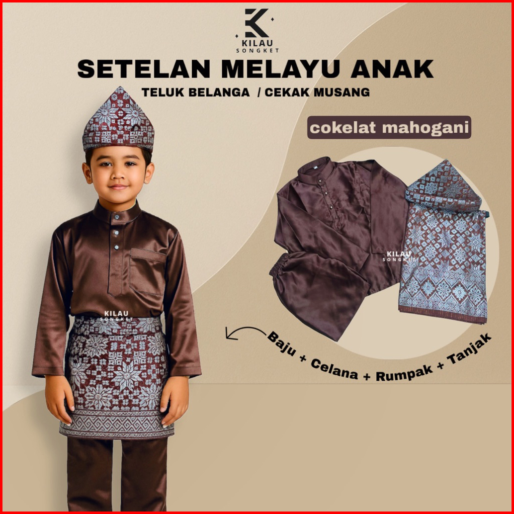 Setelan Melayu Anak Baju Celana Cekak Musang Teluk Belanga Dengan Rumpak Tanjak Songket