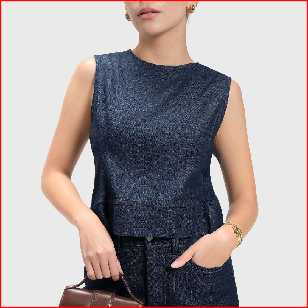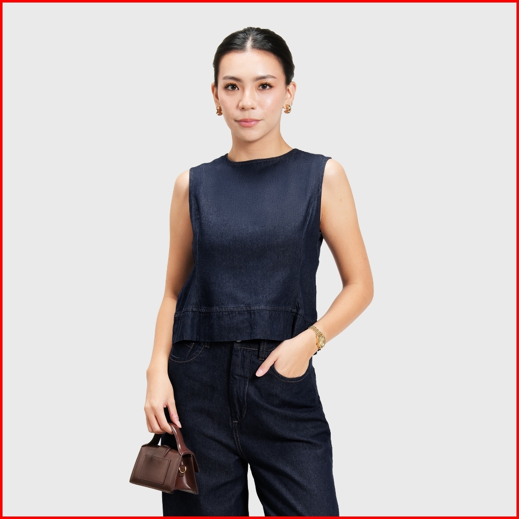 Perfect Date - Haven Denim Sleeveless Top Atasan Blouse Denim Wanita Tanpa Lengan