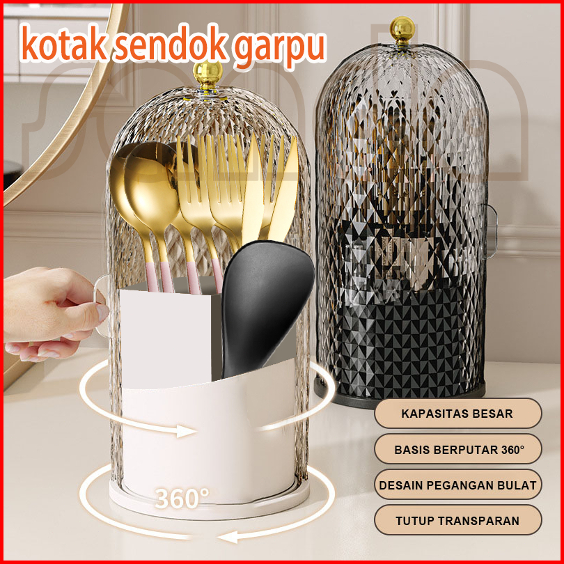 Sijiang 360 Wadah Sendok Tempat Sendok Garpu Berputar Tempat Sumpit Cutlery Alat Makan Wadah Penyimpanan Organizer Kotak