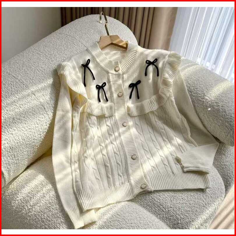 Darika Ruffle Cardy Cardigan Rajut Wanita Kardigan Cable Pita Cardy Kepang