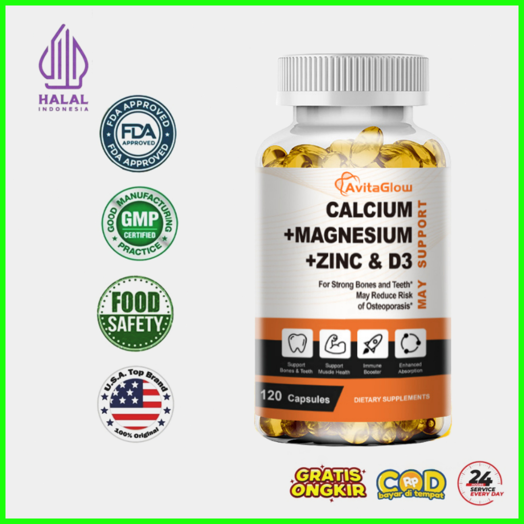Mulittea Calcium Magnesium Zinc Capsules with Vitamind3 for Strong Bones & Teeth|Heart, Nerve & Immune Function Support 120pcs untuk