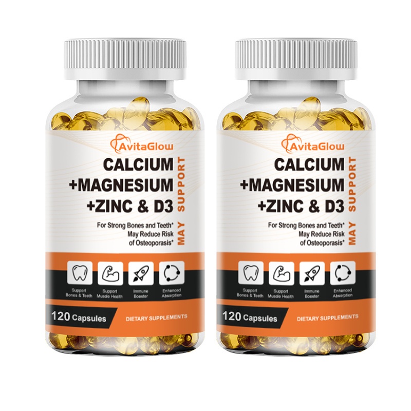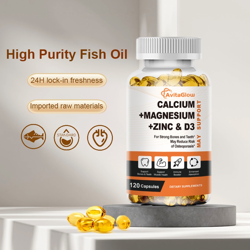 AvitaGlow Calcium Magnesium Zinc Vitamin D3 Kapsul 120PCS Fish Oil Suplemen Strong Bones And Teeth May Reduce Risk of Osteop For Kids & Adults Promotes Heart & Nerves System Health & Immune