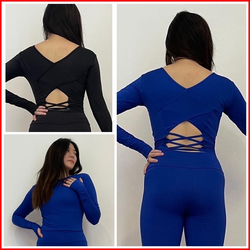 Atasan Senam Aerobik Zumba Yoga Gym Fitness Model Crop V Anyam Panjang