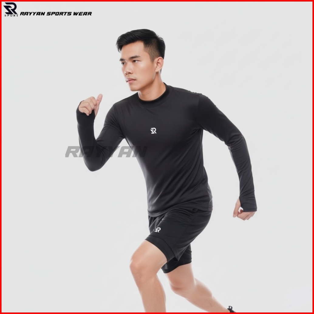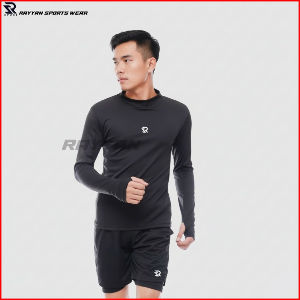 Rayyan Sports Wear Manset Baselayer Lengan Panjang Lubang Jempol Jari Mangset Olahraga Lari Volly Futsal Dan Sepak Bola