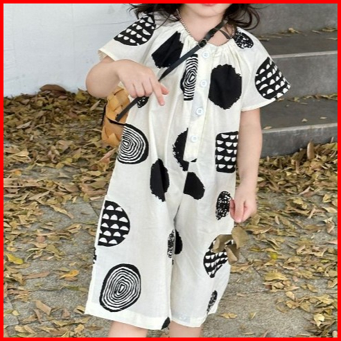 Acadiakids - Jumpsuit Anak Perempuan Darcela Terusan Panjang Lengan Pendek Motif Abstrak Premium Terlaris Terbaru