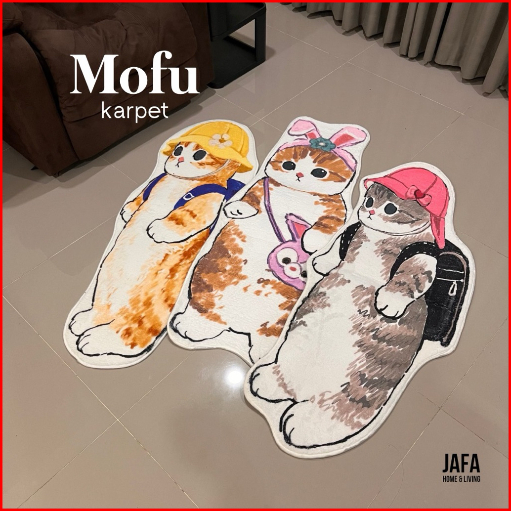 Jafa Mofu Karpet Rumah Kamar Tidur 50x120 Kartun Kucing Kitty Floor Mat Large Animal Cat Mofusand Cartoon Room Bathroom