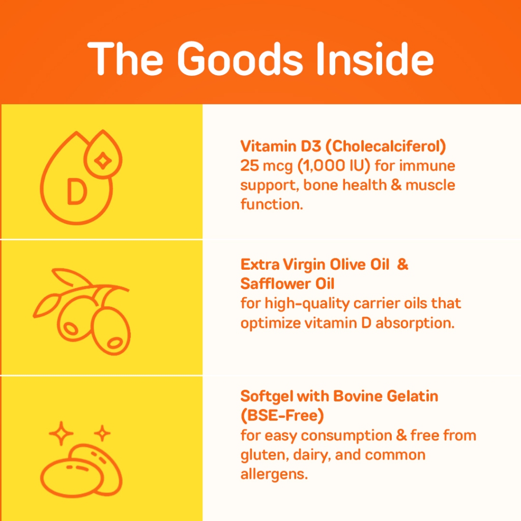 NOW Supplements, Vitamin D-3 1000 IU, 180 Softgels