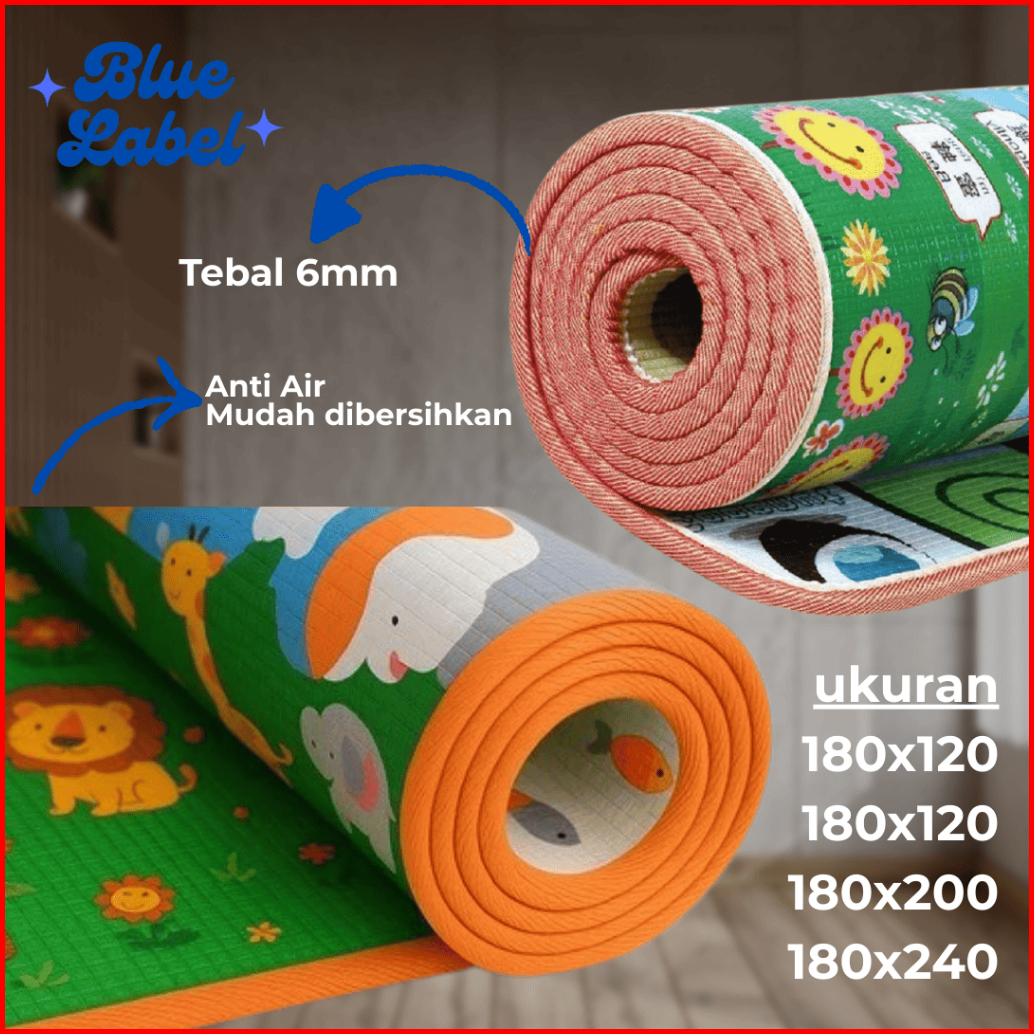 Karpet Foam Jumbo Tebal 180x240 180x200 180x180 180x120 Tikar Lantai Busa Empuk Pe Bolak Balik Motif Karakter Anak Utk L