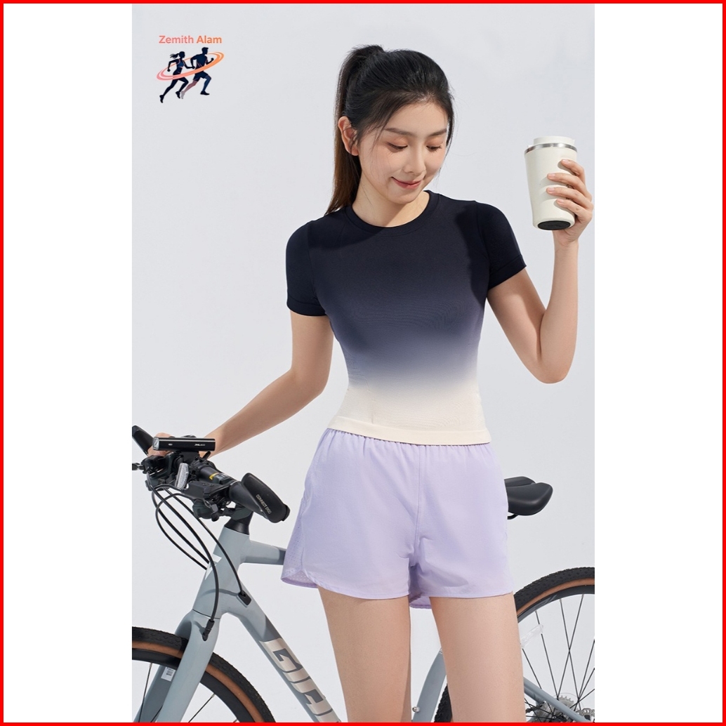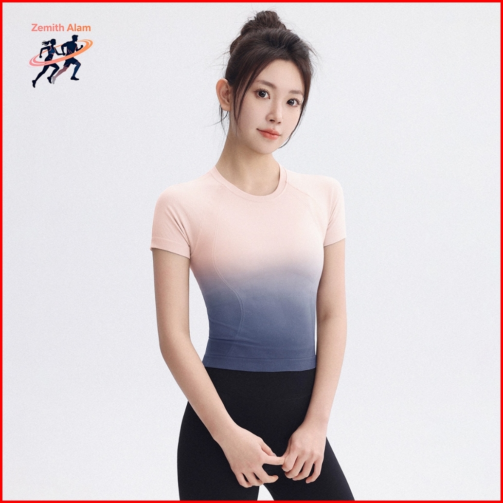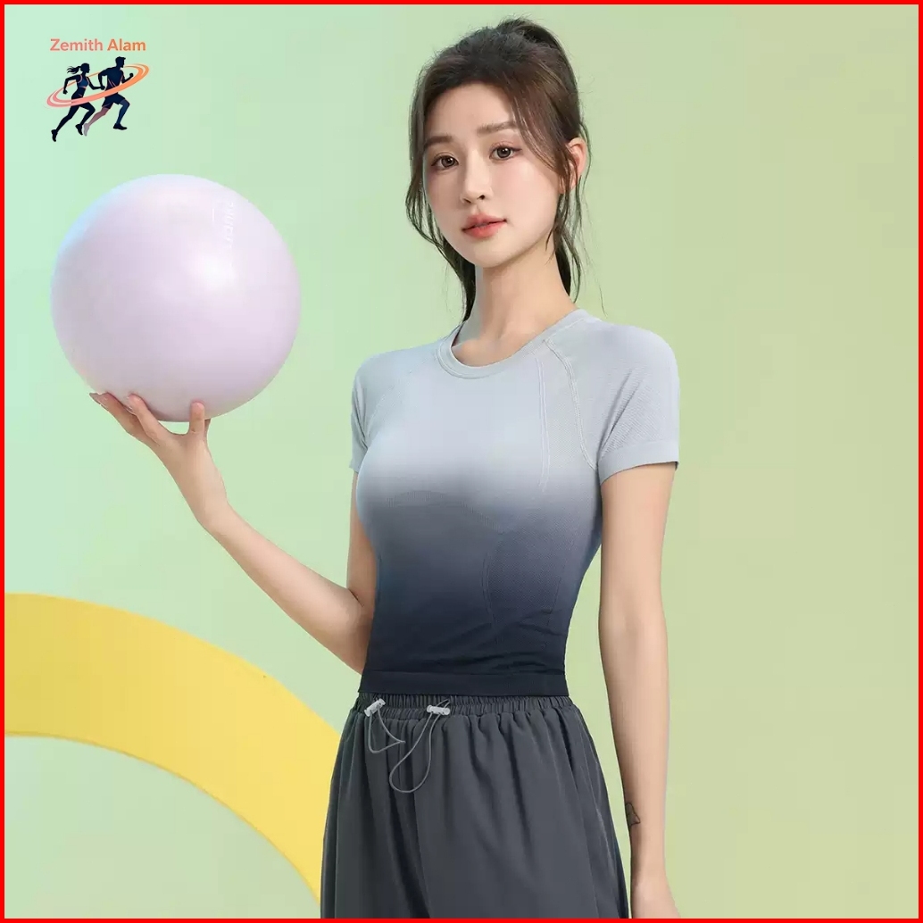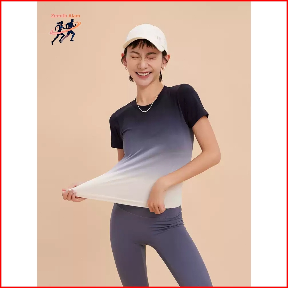 Zemith Alam Ombre Kaos Atasan Lengan Pendek Olahraga Yoga Gym Fitness