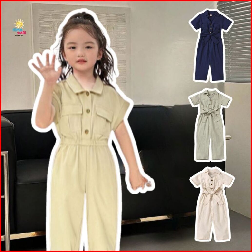Himawari.kids Jumpsuit Anak Perempuan Cassy Terusan Panjang Lengan Pendek Polos Premium Baju Lebaran Terbaru Trendy